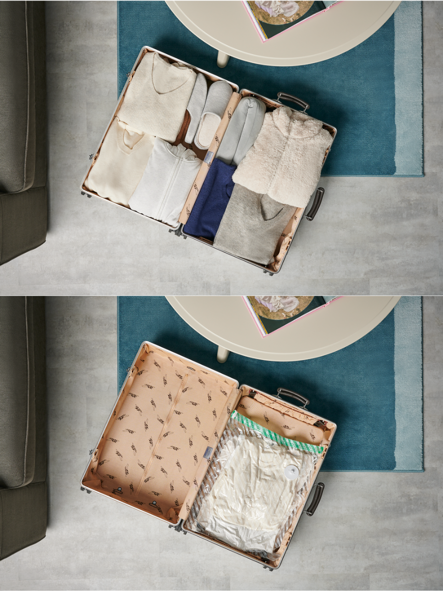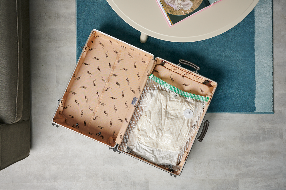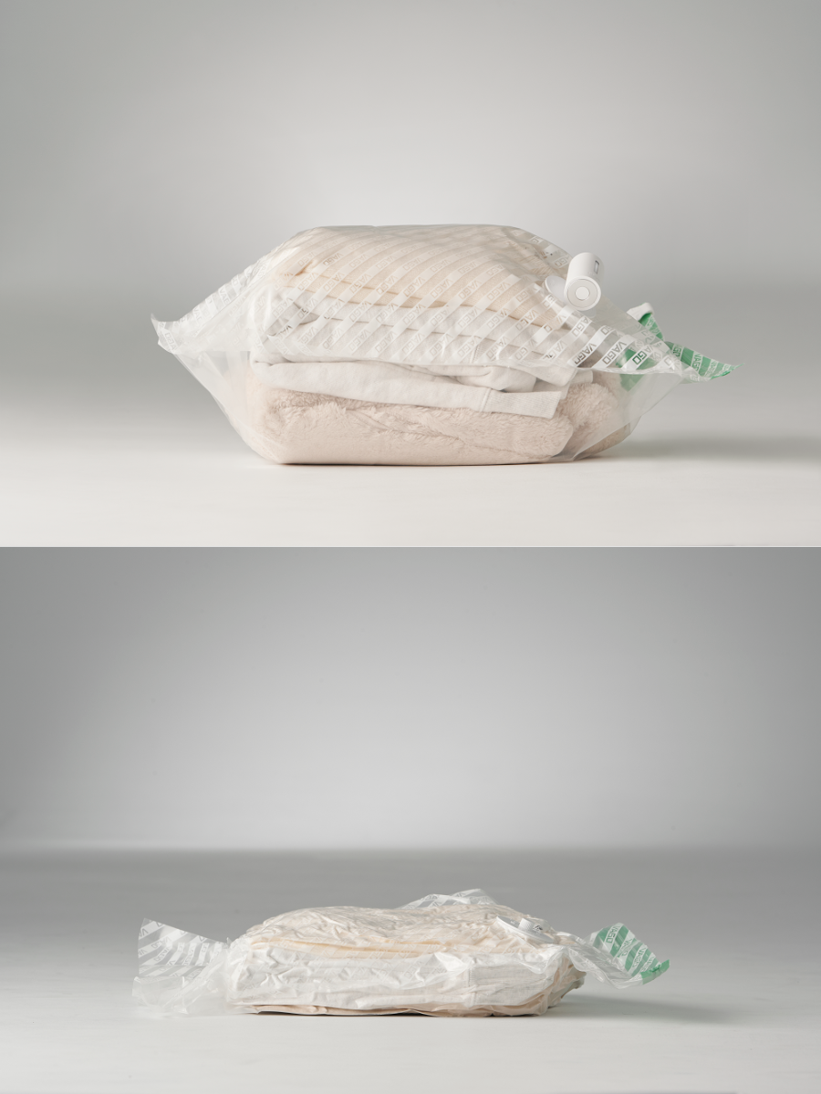 圧縮完了までの時間はおよそ2分。旅先でスピーディーに衣類を圧縮することで、スーツケースのスペースを確保することができます。