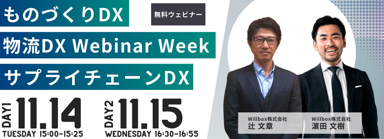 工場・倉庫・品質管理・在庫管理・配車管理などサプライチェーン全般の生産性を高める14社のセミナーが開催。「非効率な業務をどうにかしたい」「コストを抑えたい」などの課題を抱えている方に向け、DX推進のきっかけが見つかる3日間をお届けします。Willboxは「海上輸送」と「航空輸送」2つのテーマで登壇することが決定しました。