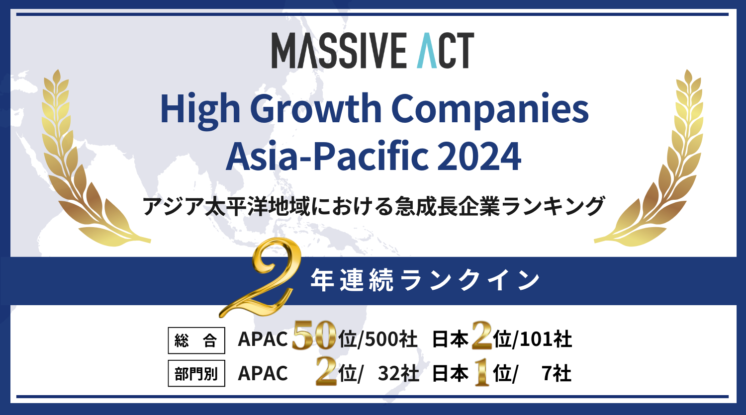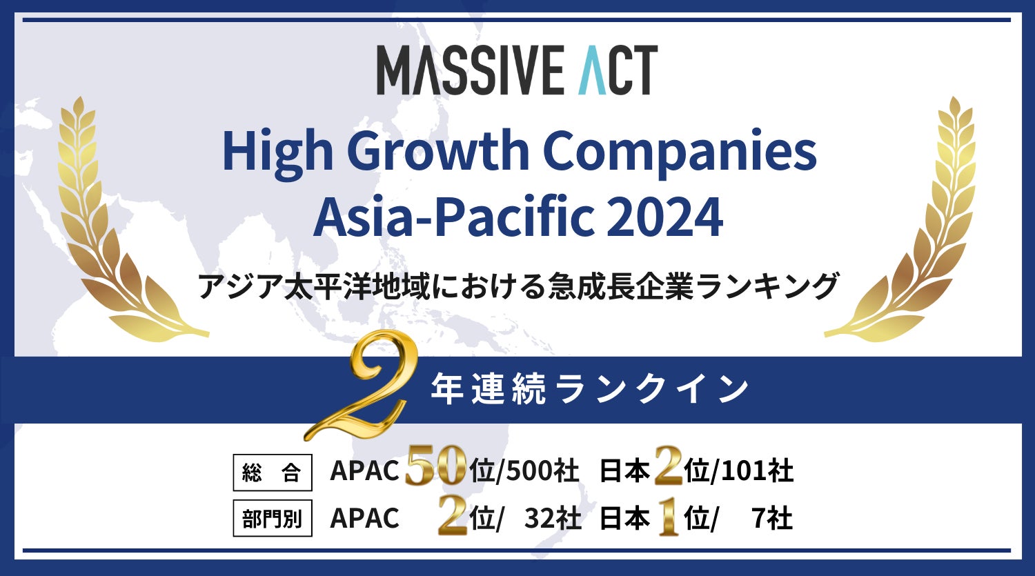 Massive Actが2年連続入賞!Financial Times社「アジア太平洋地域における急成長企業ランキング2024」において、APAC 50位(日本国内 2位)にランクイン