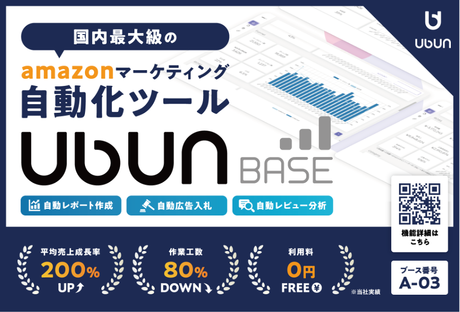 ECブランドの成長を実現する株式会社ウブンは、国内最大級のAmazonマーケティング自動化ツール「Ubun BASE」を無料で提供しております。分断するAmazonデータを統合し、レポート作成工数をゼロにします。さらに、売上拡大のための複数のサポート機能を兼ね備えております。