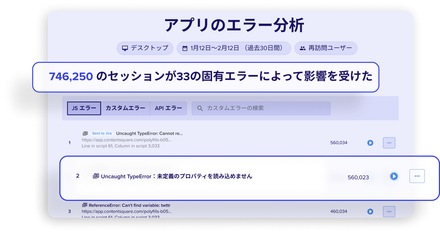 各種のエラーがユーザー体験におよぼしている影響と、そのビジネスインパクトを定量化する機能
