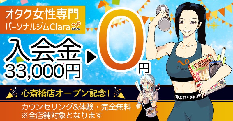 【ついに関西進出!】オタク女性専門パーソナルジムClara、4/10(月)に大阪・心斎橋店をオープン!体験&入会金無料キャンペーンを実施