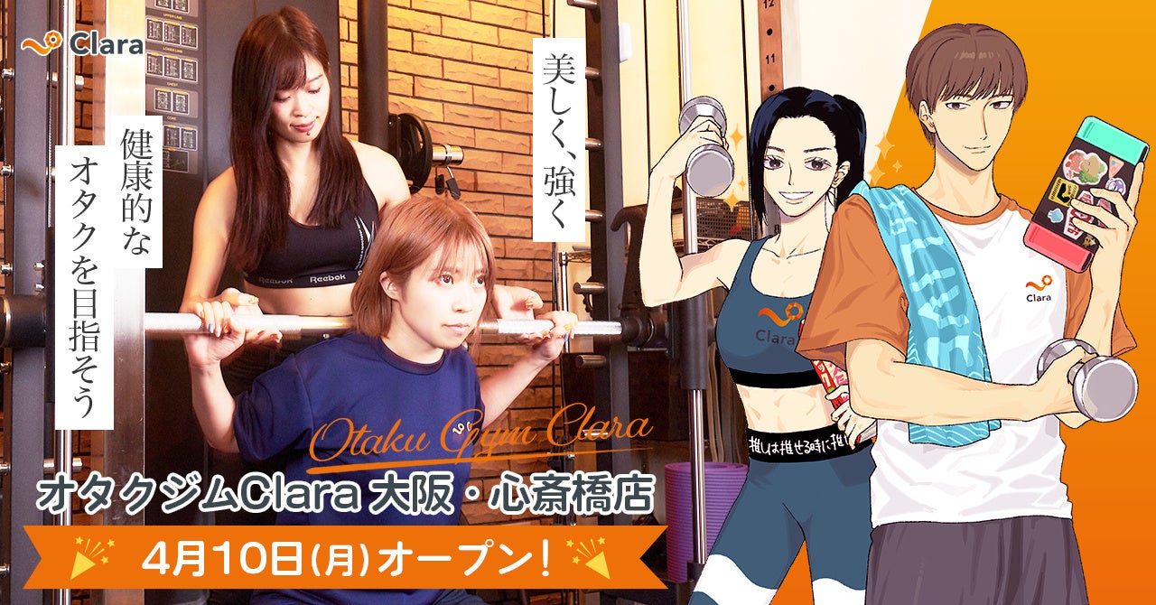 「オタク女性の身体のお悩みに寄り添い、 美と健康をお届けする」というミッションを掲げる、業界初・オタク女性専門パーソナルトレーニングジム「Clara(クララ)」は、2023年4月10日(金)に大阪・心斎橋にて新店舗をオープンしました!
