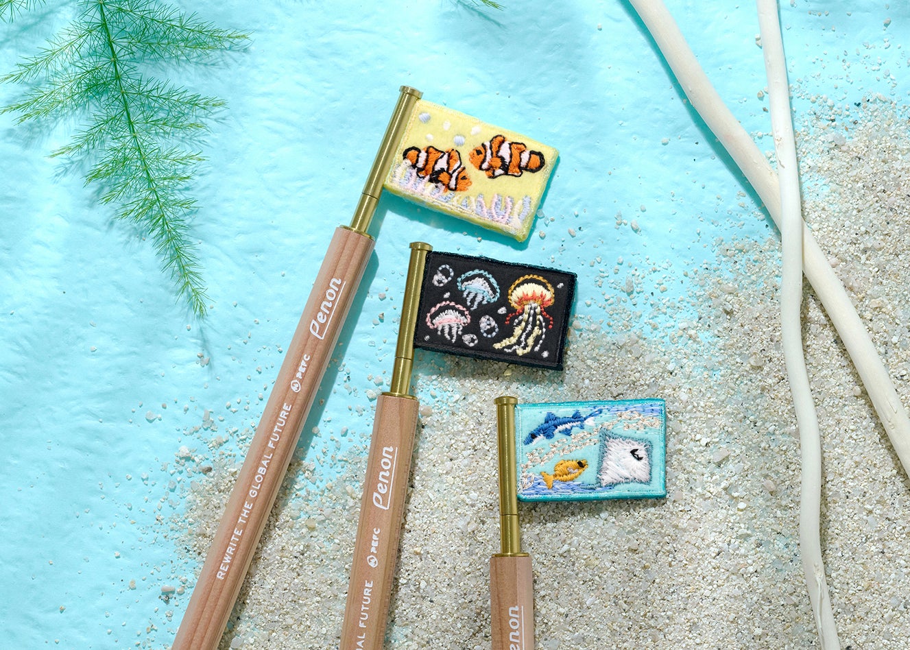 新江ノ島水族館と刺繍作家hinakaさんのスペシャルコラボアイテム!水族館の生き物たちがモチーフの「PENONフラッグペン」限定発売