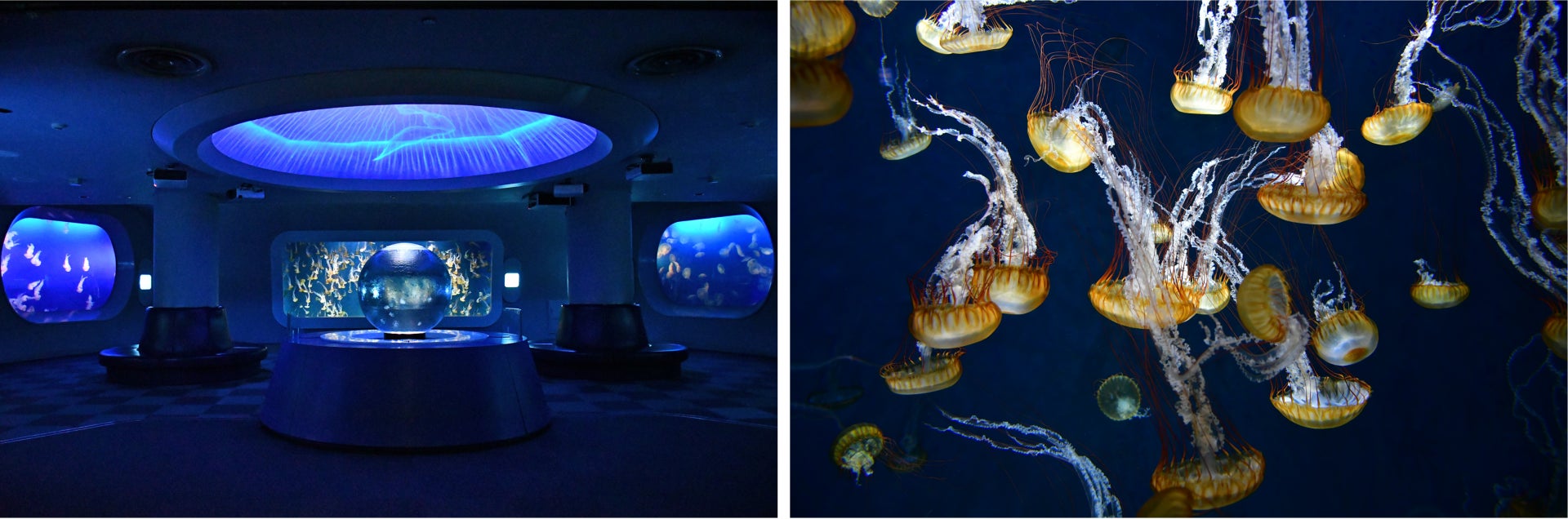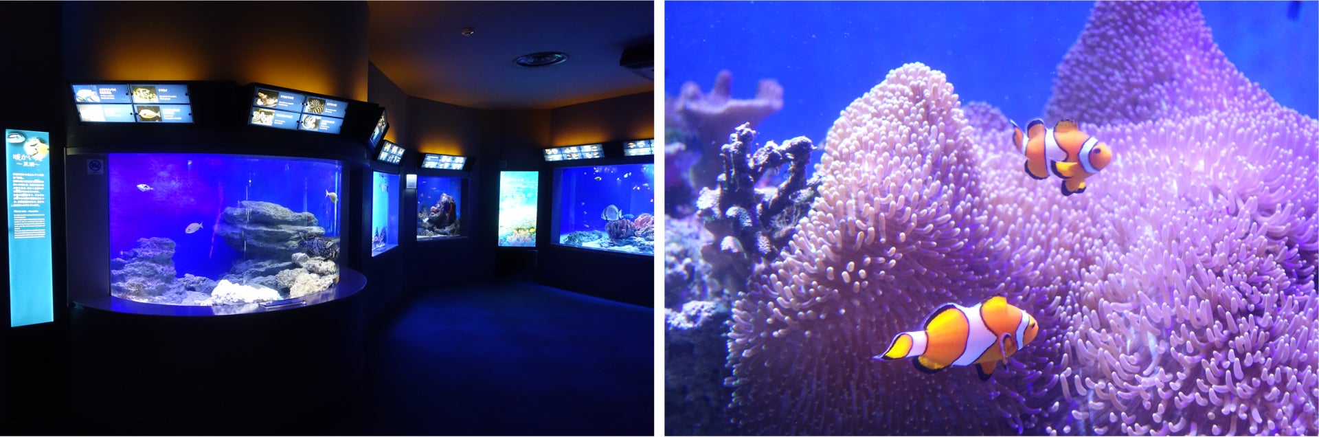 (左から)クラゲファンタジーホール、相模湾大水槽、カクレクマノミ