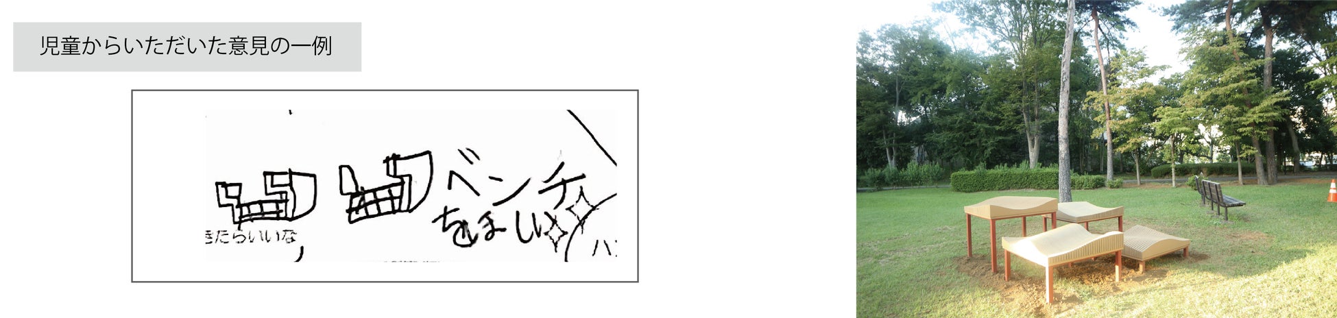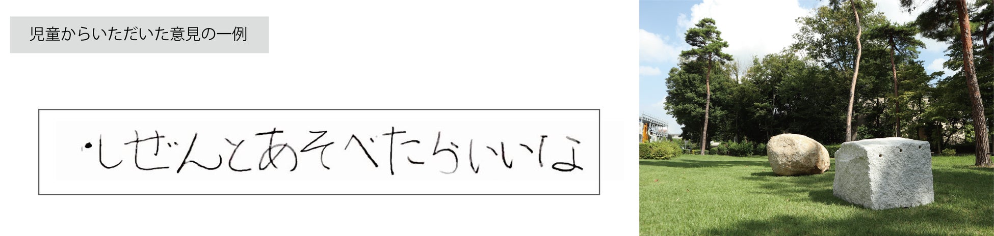 本事業では、近隣住⺠の意⾒を聴くだけではなく、実際に公園を多く利⽤するこどもの意⾒を⼗分に反映することが重要だと考え、地域の⼩学校を巻き込んだ取組みを⾏ってきました。