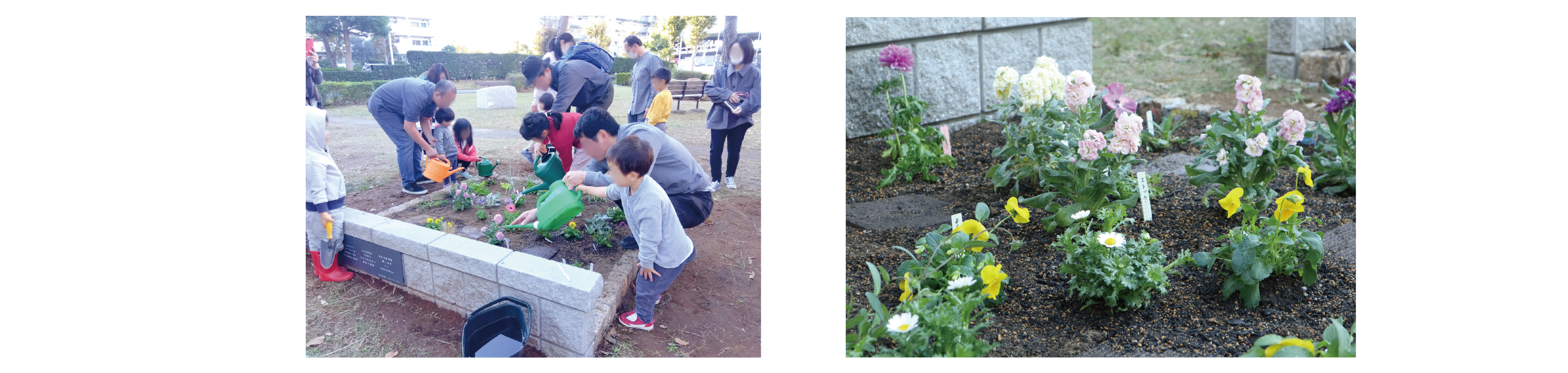 地域の方が愛着を持つ公園とするため、地域の方が自らつくる花壇を設置。花壇の整備費はクラウドファンディングで地域住民の方から協力を募るとともに、花壇の整備も地域住民と一緒に実施。花壇の維持管理には「アダプト・ア・パーク」を活用した団体を設立。