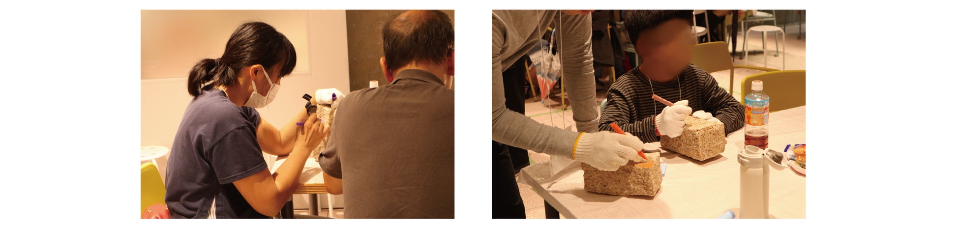 筑波山麓ジオパークの加工されていない野面石と、切り出した跡などが楽しめる2つの岩を設置。岩には産業技術総合研究所の地質調査センターの協力で岩の出来方や成分などが表示。