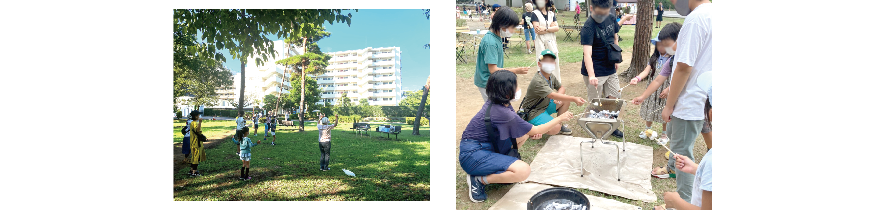 地域の人が気軽に集え楽しめるイベントを地域の方が自ら運営できるよう、地域の方が簡単に運営できるようなコンテンツを実施。例えばこどもと大人が一緒に楽しめる「自分で焼くマシュマロ」や「焼き芋」、「ワークショップ」などを実施。