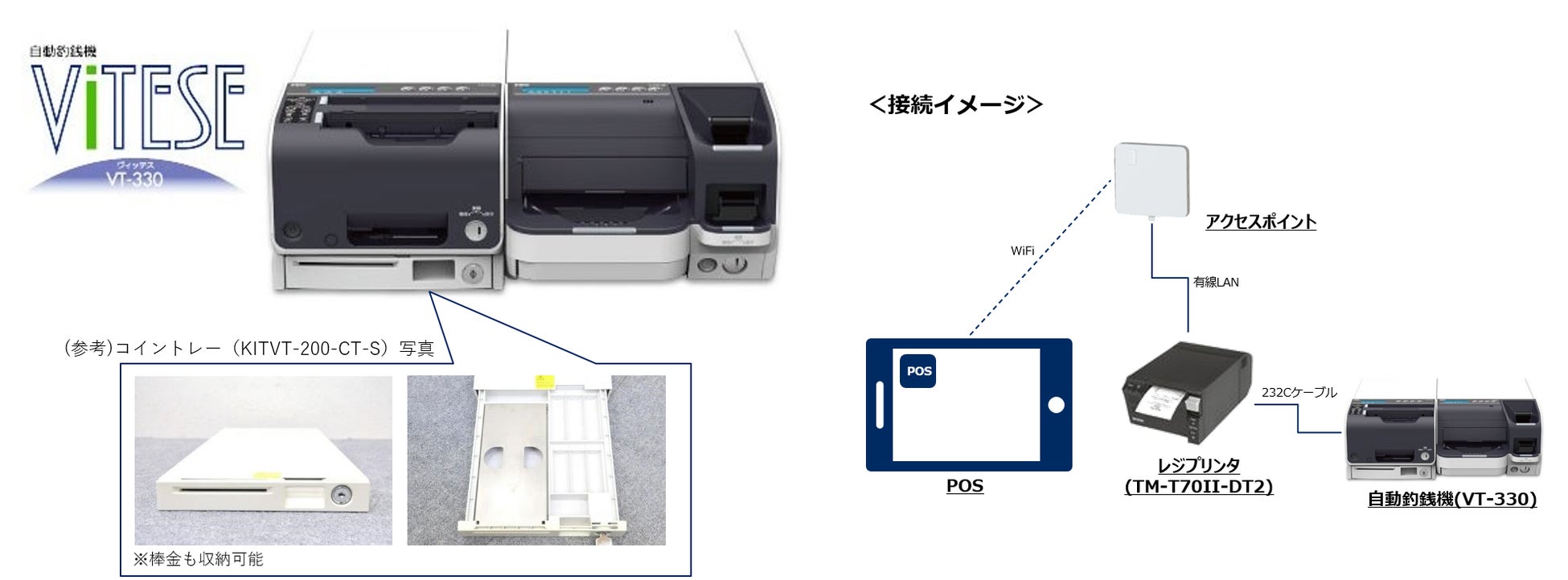 東芝テック社の「自動釣銭機(VT-330)」と連携できるようになりました。