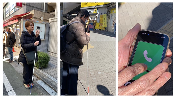 一方、プライムアシスタンスでは2021年より視覚障がい者向けに「声の視覚情報」を提供するサービス「アイコサポート」を提供しています。スマートフォンのカメラで写した映像や位置情報を元に遠隔のコンタクトセンターが視覚情報を音声でお伝えし、現在地の特定や目的地までの移動や日常生活における情報取得をサポートします。