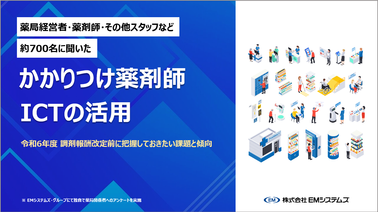 令和6年度 調剤報酬改定において、「かかりつけ薬剤師」の重要性から機能の推進に関する評価や見直しがされています。また、医科・調剤共に広く「医療DX」を推進する体制や整備の評価が示されました。この度、EMシステムズ・グループでは、薬局経営者及び薬剤師、スタッフの方々より実際の現場の意見・実態を調査し、今後取り組むべき点や改善すべき課題等を明確にするためアンケートを実施いたしました。