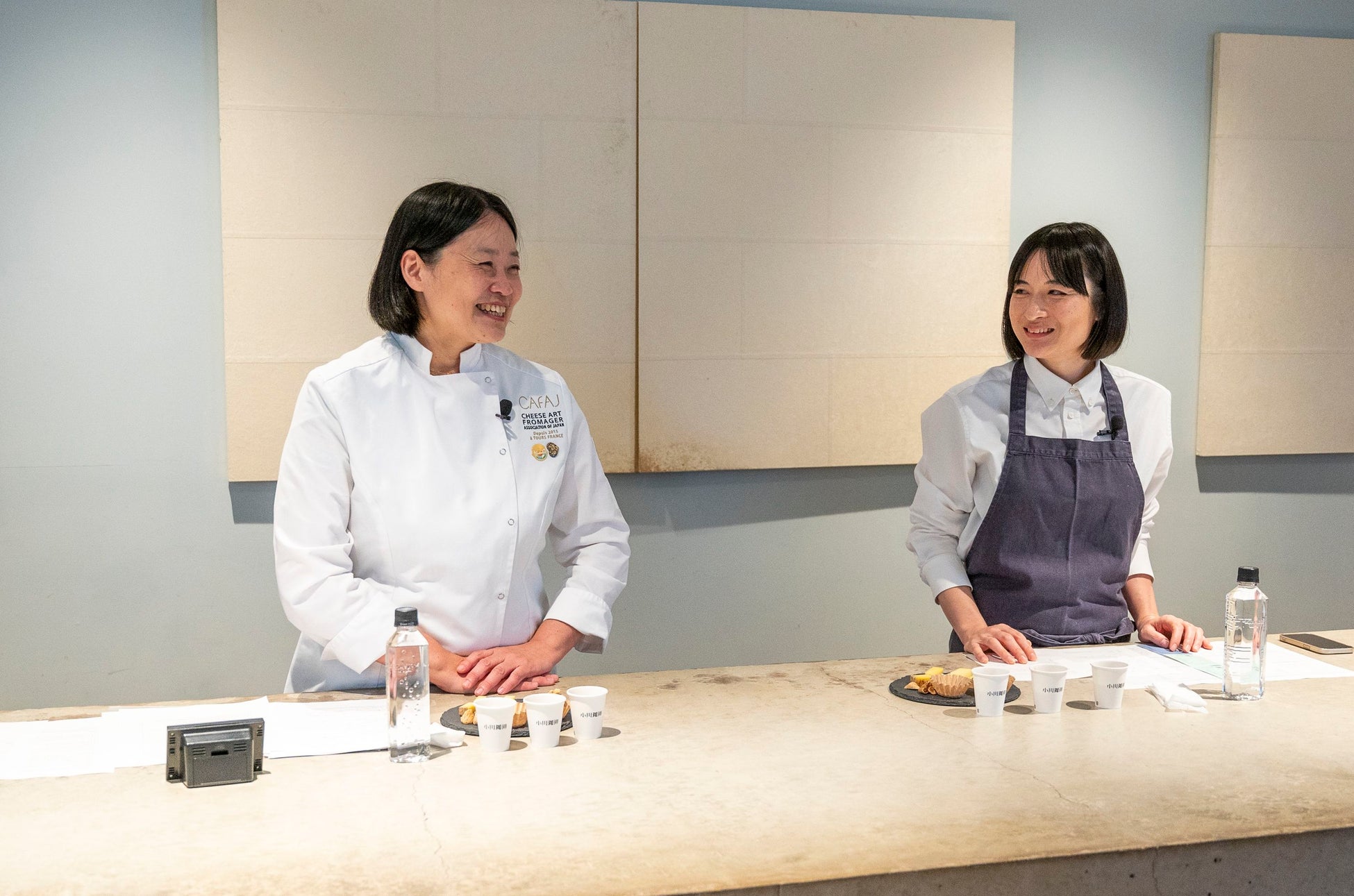 講師はチーズの専門家である日本チーズアートフロマジェ協会副理事長の村瀬美幸氏と珈琲の専門家である小川珈琲株式会社 総合開発部 店舗開発課 チーフバリスタの吉川寿子氏。