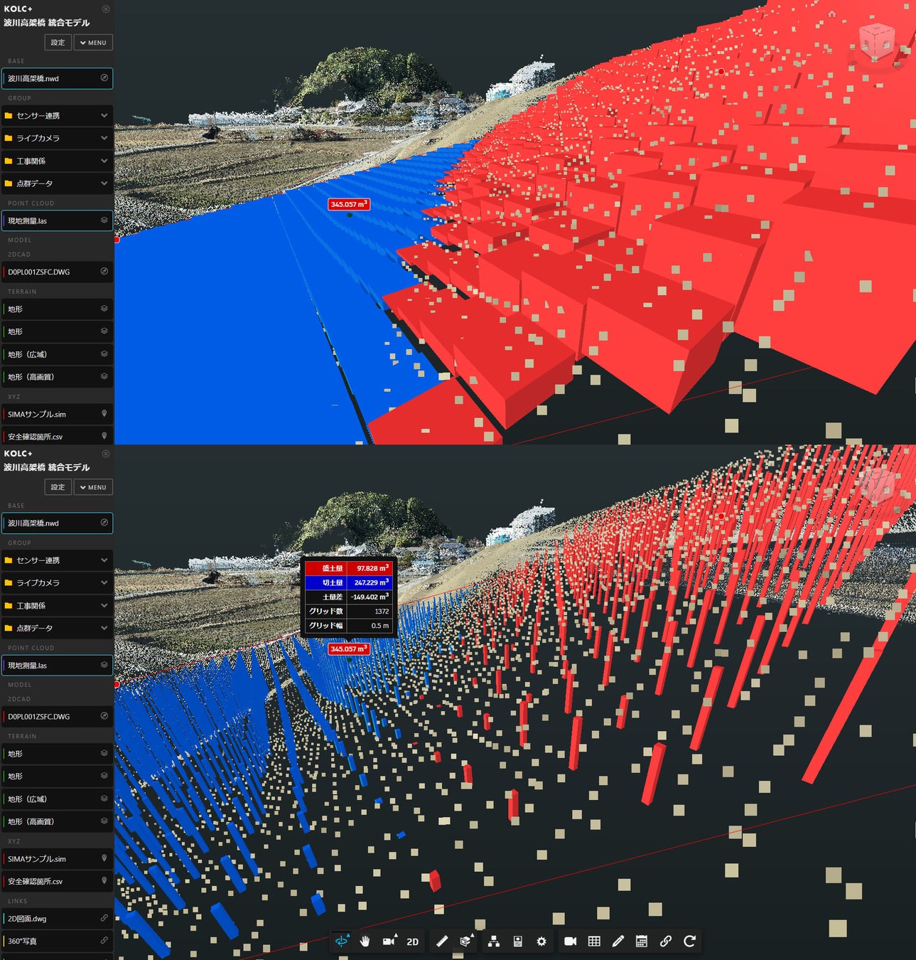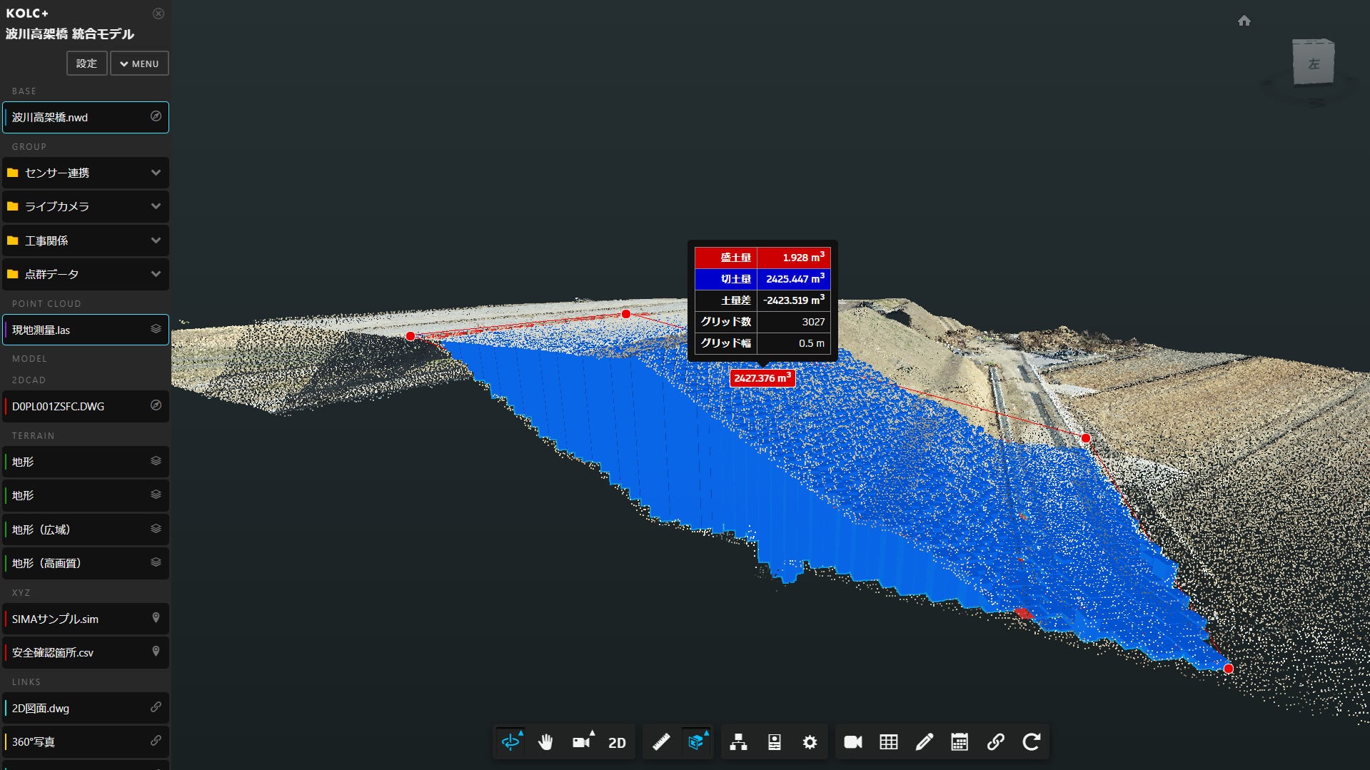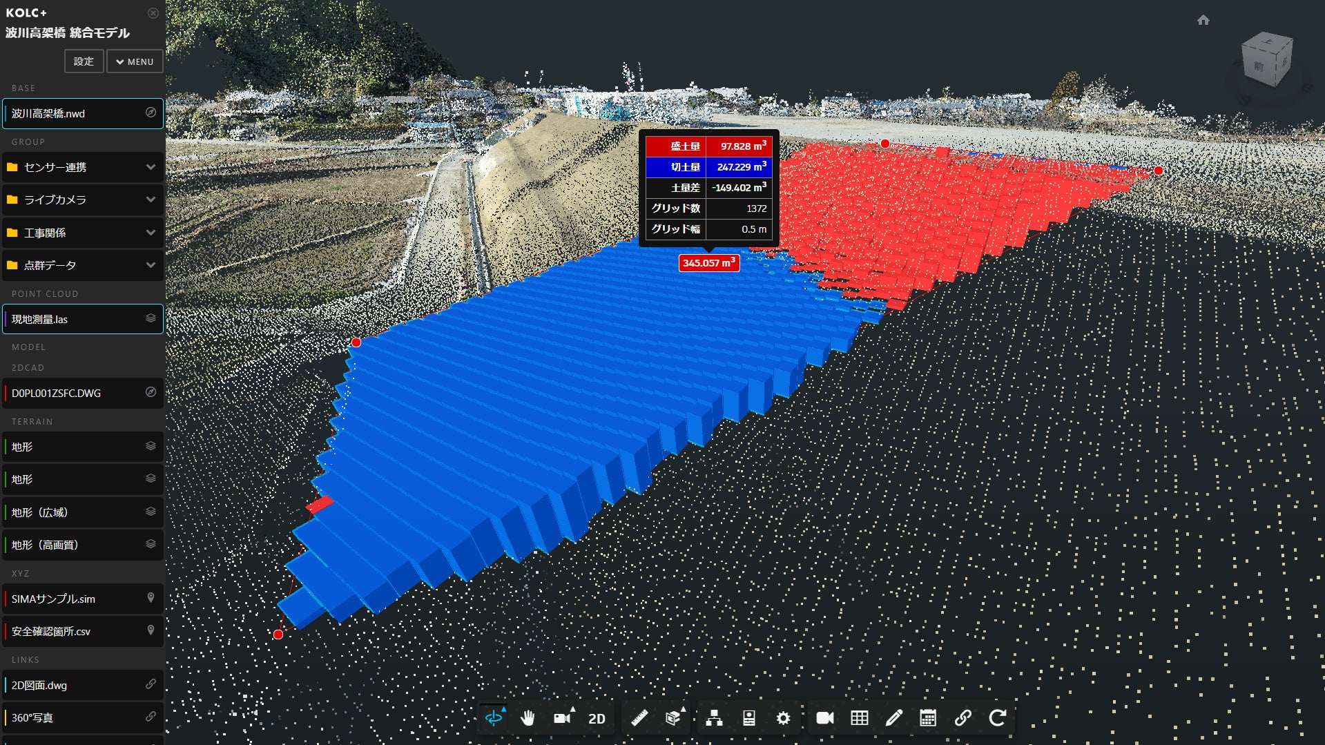 BIM/CIM・点群をクラウドで統合して「差分土量」を算出可能に