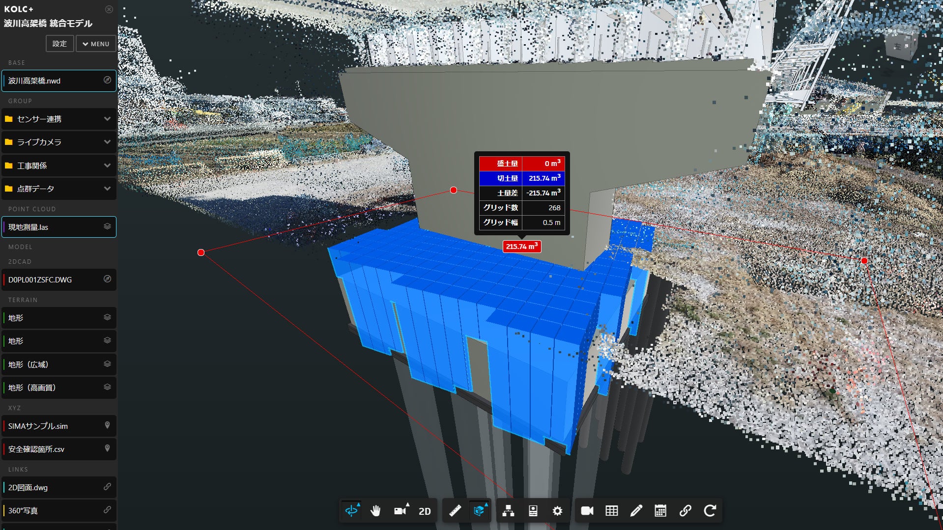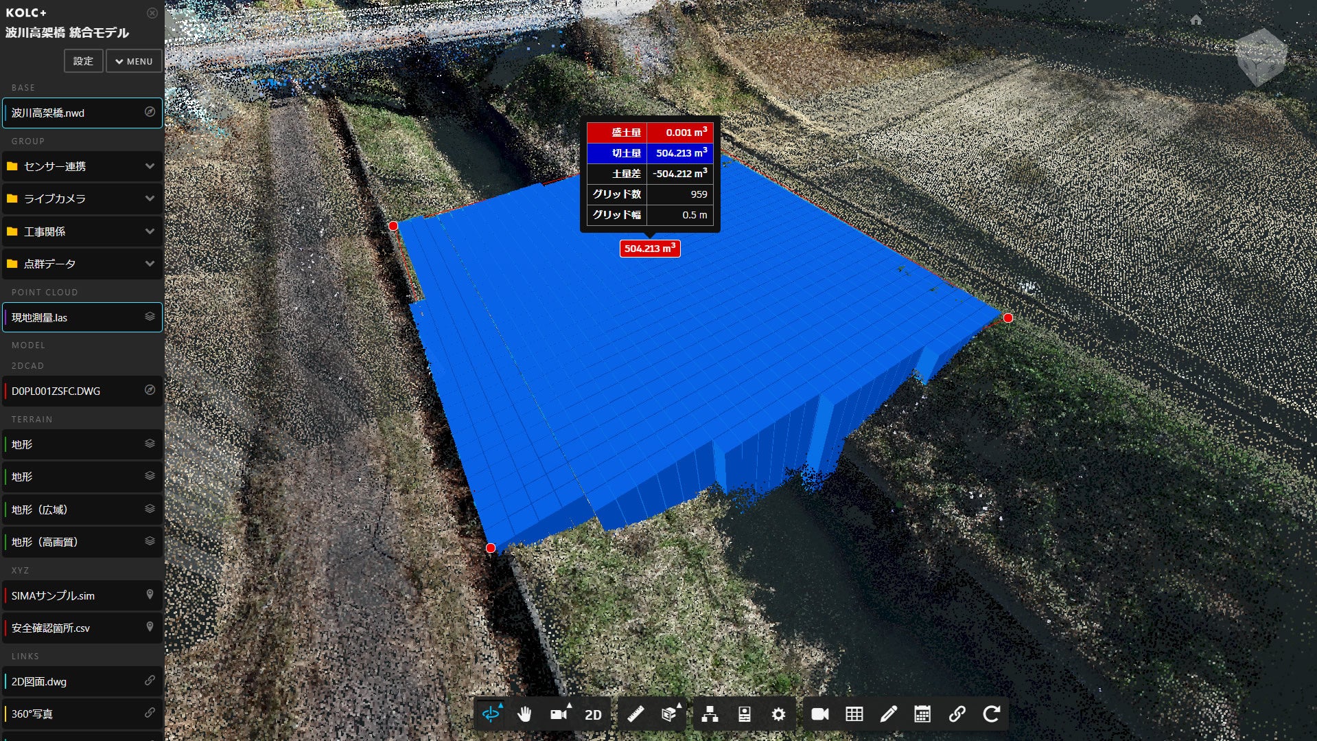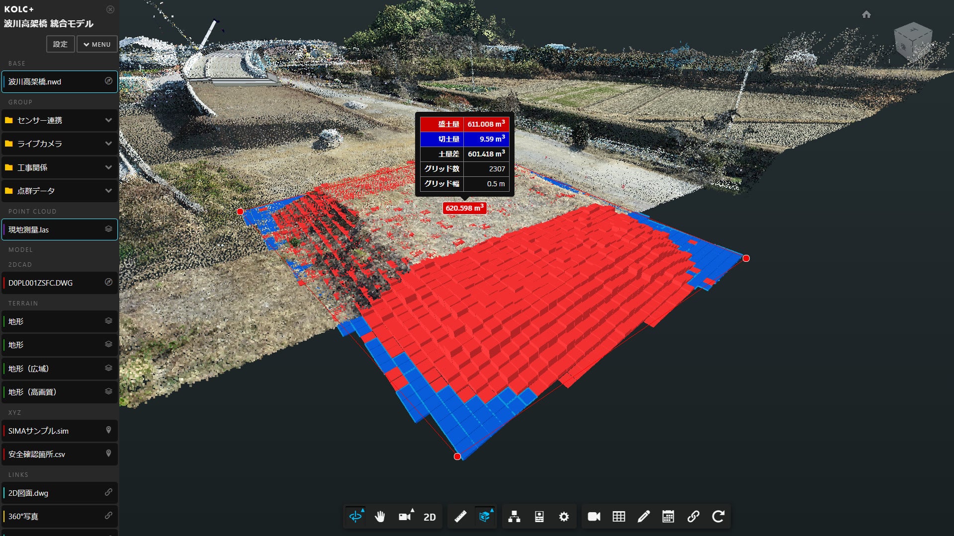 BIM/CIM・点群をクラウドで統合して「差分土量」を算出可能に
