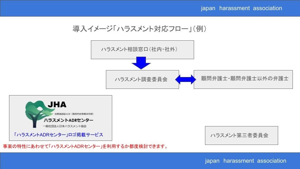 企業、団体のハラスメント対応フローに日本ハラスメント協会の「ハラスメントADRセンター」を追加、設定可能な新サービス。企業、団体主体のADR活用で早期にパワハラ、セクハラの紛争解決。訴訟リスクも回避