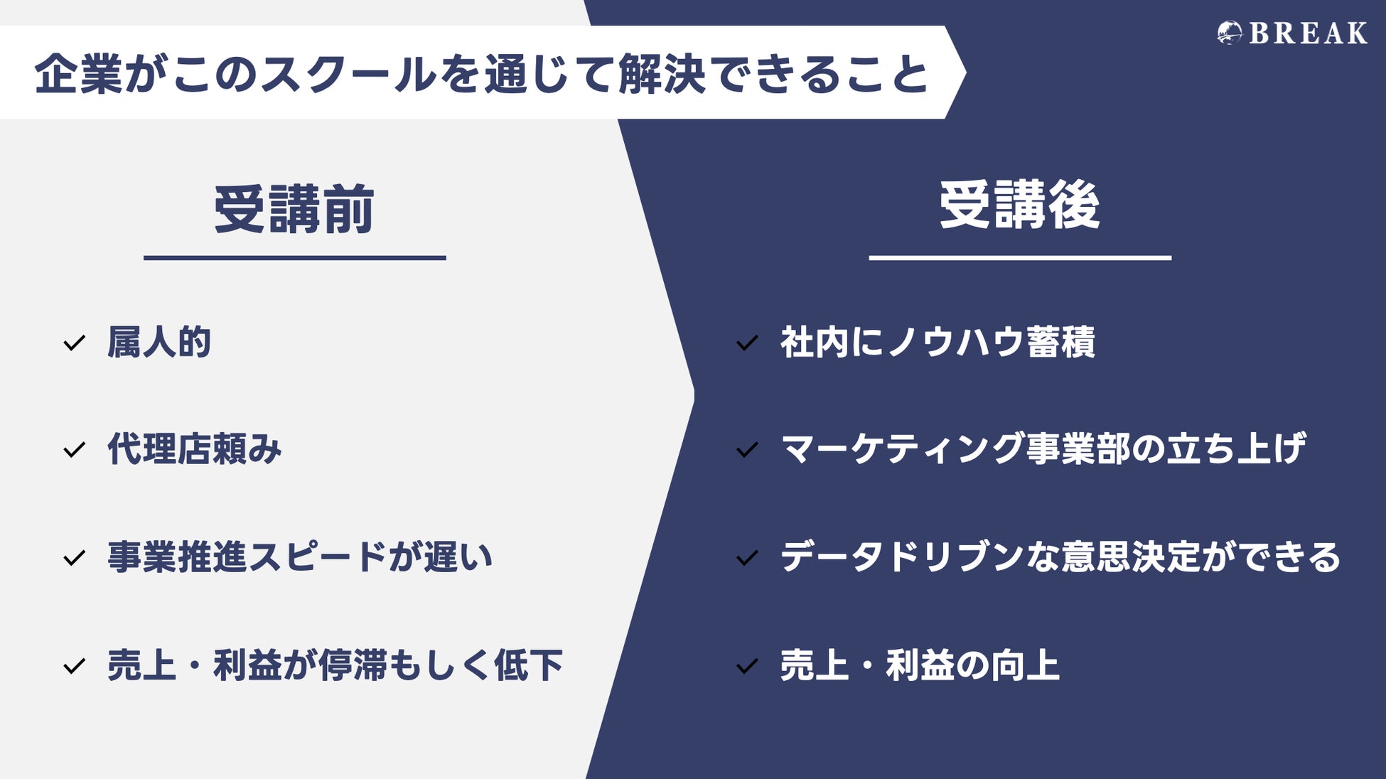 株式会社ブレイクは「 Break The Border 」を企業理念とし、関わる全ての個人・企業様の目標達成にコミットし、3つの壁を乗り越え現状を打破して成長・事業拡大することに貢献します。