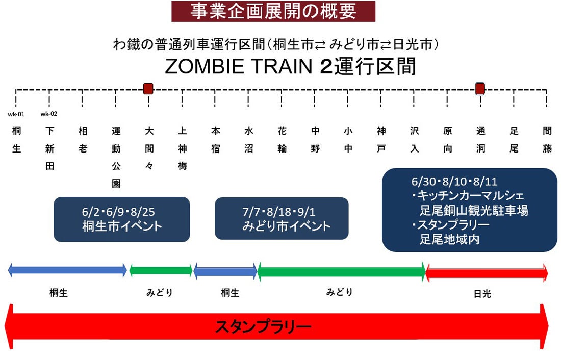 そこで昨年、日光市の新たな企画提案にわ鐵と沿線自治体が呼応する形で、企画列車(ZOMBIE TRAIN)を初めて運行。この奇抜なアイデアを用いた話題性のある企画を実施したことで、他の地方鉄道との差別化をはかり、わ鐵の乗客増につながる効果がありました。