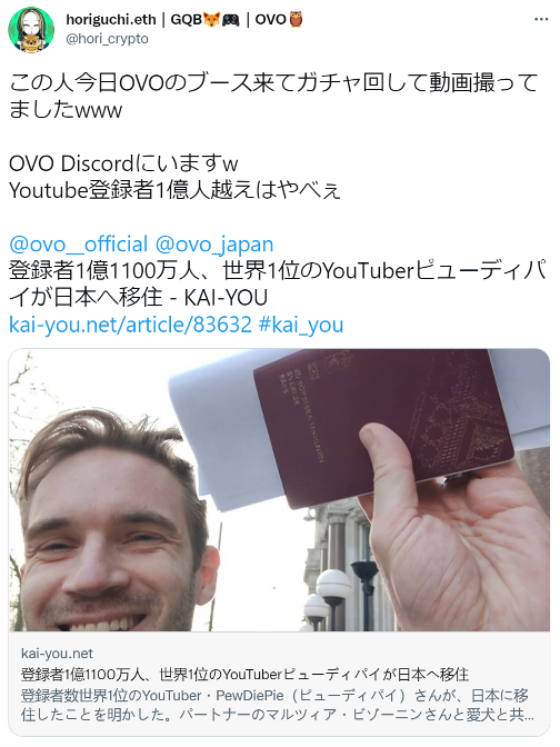 5月11日から13日にかけて、OVO×YooShiはブロックチェーンEXPOに出展した。展示会にはovo.space(以下OVO)を応援してくれている既存ユーザーのみならず、著名なYouTuber、投資家、グラビアアイドルの方々もブースへ訪れ、盛り上がりを見せた。