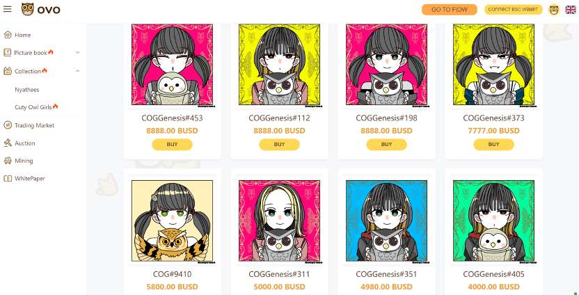 OVOは「にゃっちーずの冒険」シリーズのNFTを発行し、合計4万枚以上を販売、BNB Chainにおけるトランザクション数は8万を超えた。