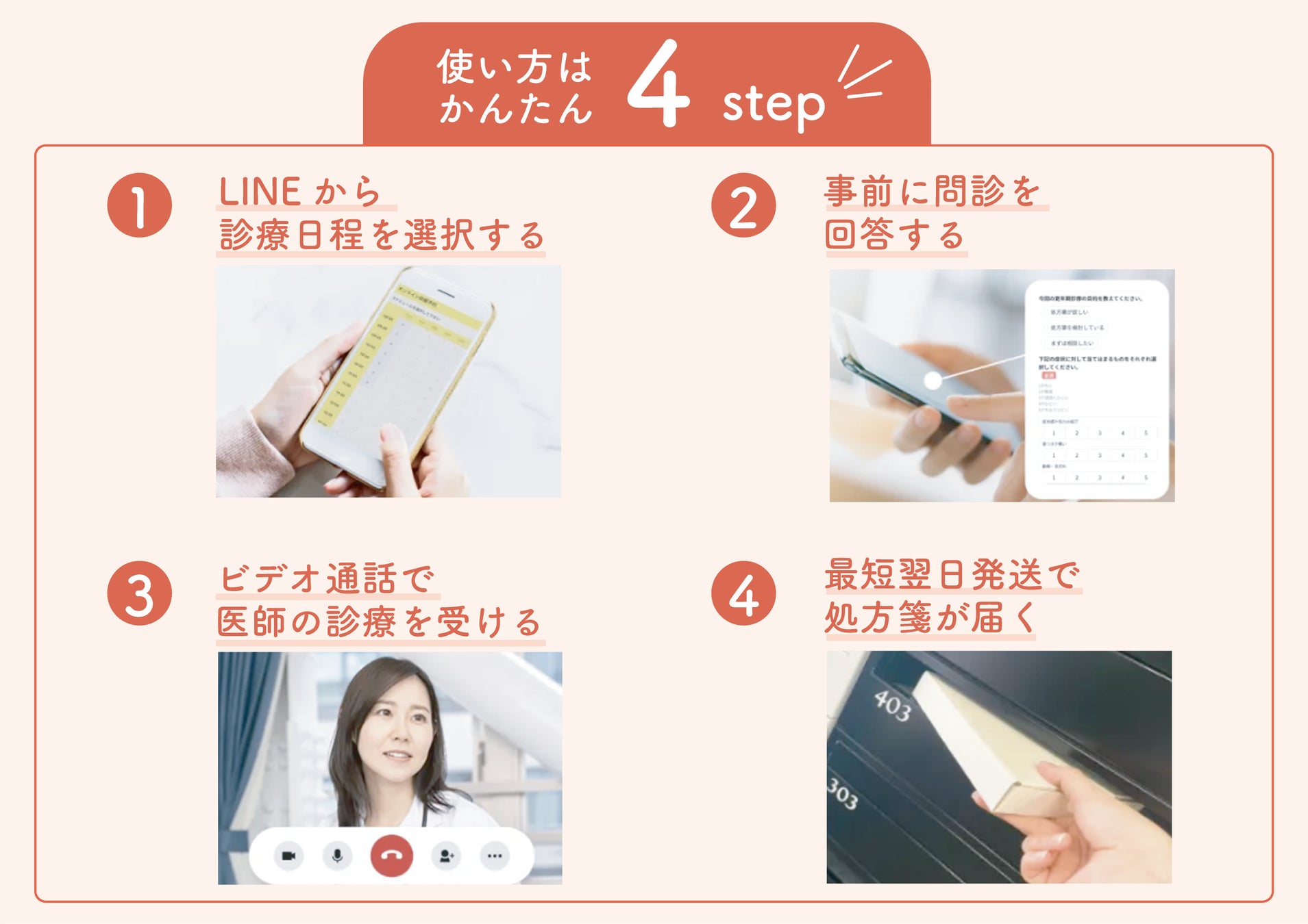 「MYLILY(マイリリー)」はLINEで診療予約し、いつでもどこでも受診することができるので、病院に行く時間がない方や、ご自宅の近くに産婦人科系のクリニックがない方にも受診いただくことができます。診療後に処方薬が最短翌日発送でポストに届きます。