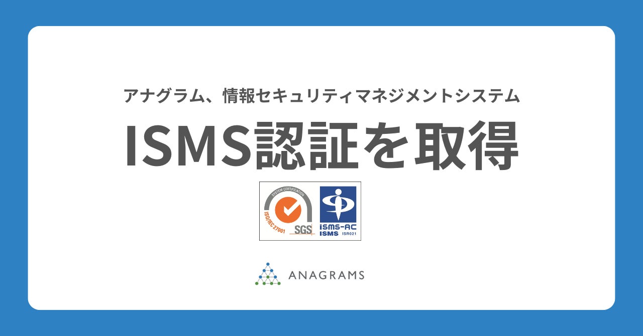 アナグラム株式会社、情報セキュリティマネジメントシステム(ISMS)国際規格「ISO/IEC 27001」認証を取得