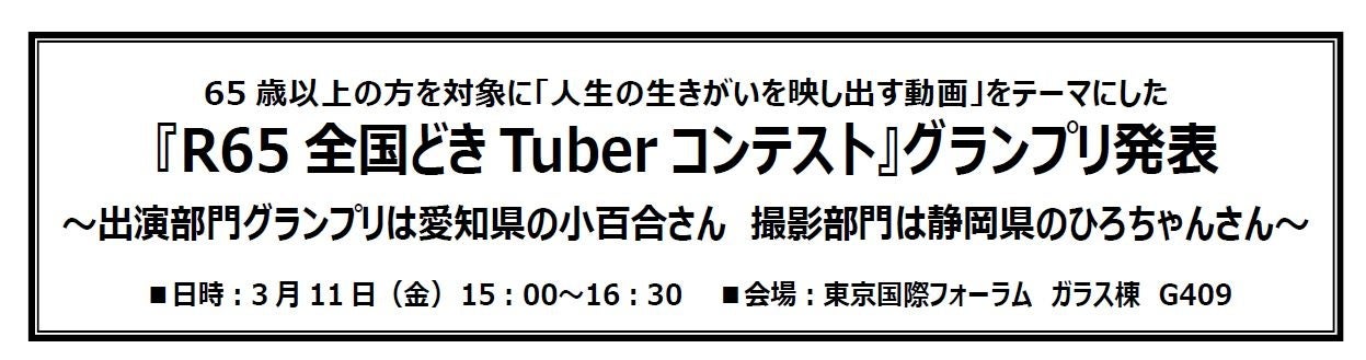 65歳以上の方を対象に「人生の生きがいを映し出す動画」をテーマにした『R65全国どきTuberコンテスト』の結果発表・表彰式を3月11日開催しました。
