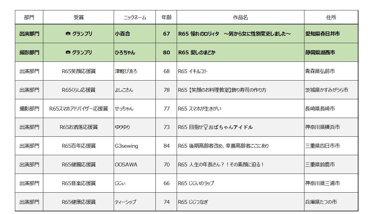 65歳以上の方を対象に「人生の生きがいを映し出す動画」をテーマにした『R65全国どきTuberコンテスト』グランプリ発表
