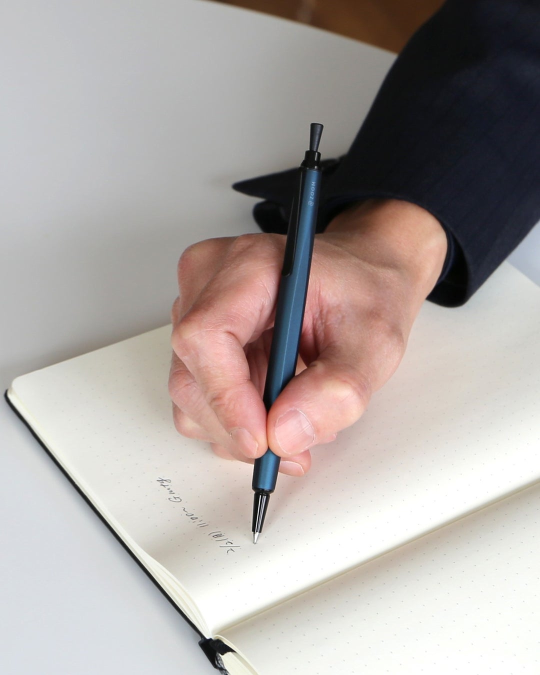 全長は約140㎜※。スーツのチーフポケットやダイヤリー、ノートで携帯し、素早く筆記できるノック式コンパクトペンです。