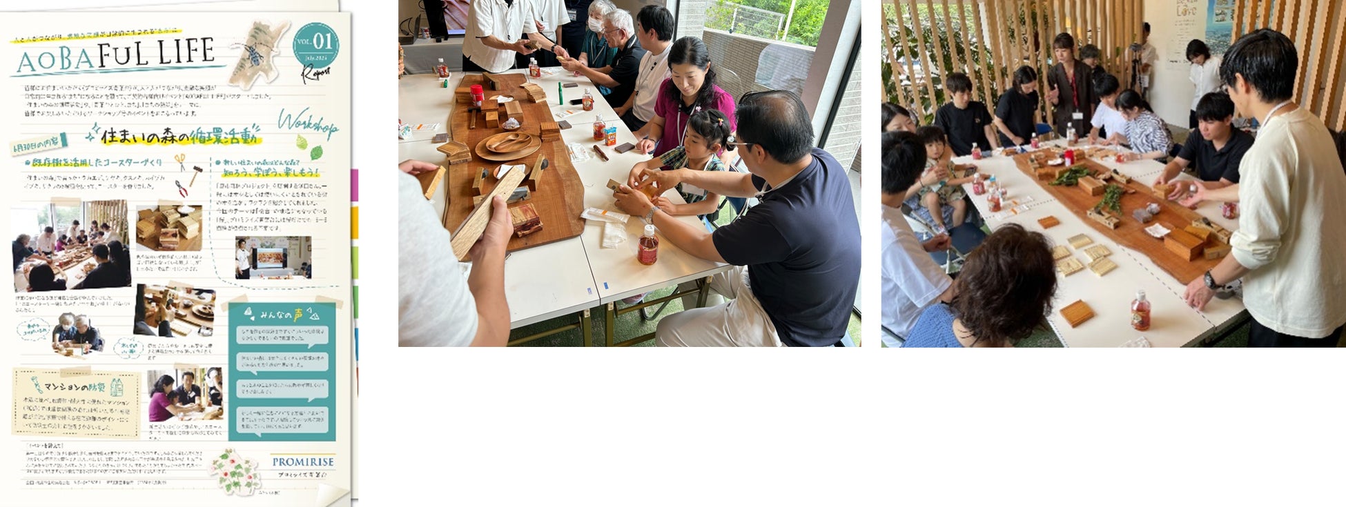 プロミライズ青葉台が、「人と人がつながり、素敵な笑顔が日常的に生まれる“まち”になる」ことへの想いから、ご契約者様向けイベント『AOBAFUL LIFE』(以下「本イベント」)をスタートさせました。本イベントでは、「住まいの森の循環活動」や、「青葉台とひと、まち」、「まちの防災」をテーマに、参加者の皆様にお楽しみいただけるワークショップ等を行っています。2025年8月(予定)までの毎月1回の開催を予定しており、ご入居いただく全ての方々が関わるきっかけづくりをサポートし、そのきっかけが次のコミュニティへ引き継がれることを目指します。