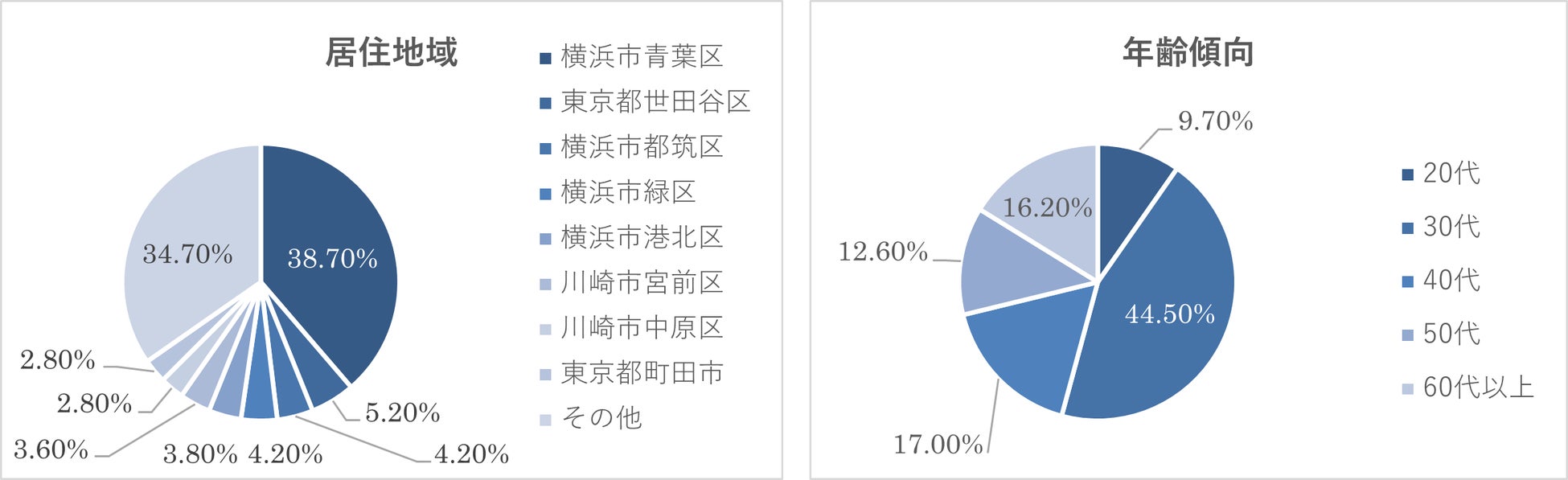 地元青葉区を中心に横浜市内在住の30代プレファミリー、ファミリー層から多くのご支持を得ております。また、東急田園都市線沿い周辺の市外居住の方や60代以上の方のご契約も多く、幅広い地域や年齢層の方からご支持をいただいています。