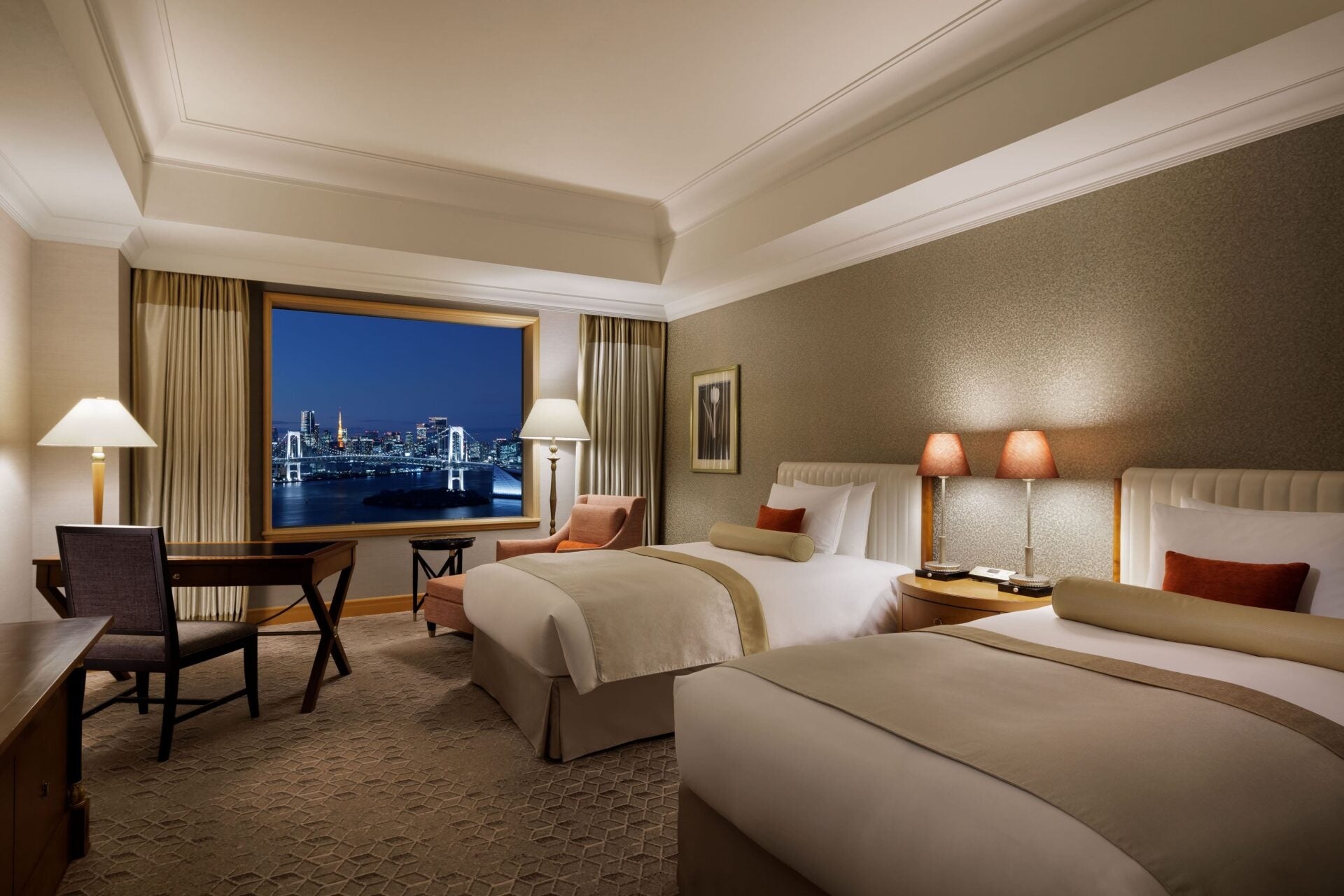 東京湾を望むラグジュアリーなシティリゾートホテル「グランドニッコー東京 台場」では、自由の女神像やレインボーブリッジを一望できる洗練された空間で、日常から離れた至福のひとときをお過ごしいただけます。10月6日(月)~10月9日(木)の期間限定で、スイートルーム宿泊者・エグゼクティブフロア利用者にシャンソン化粧品が誇る最高峰スキンケアブランド「ルタン」をご使用いただくことができます。ホテルでの滞在中、シャンソン化粧品が叶える極上のスキンケア体験をお楽しみください。