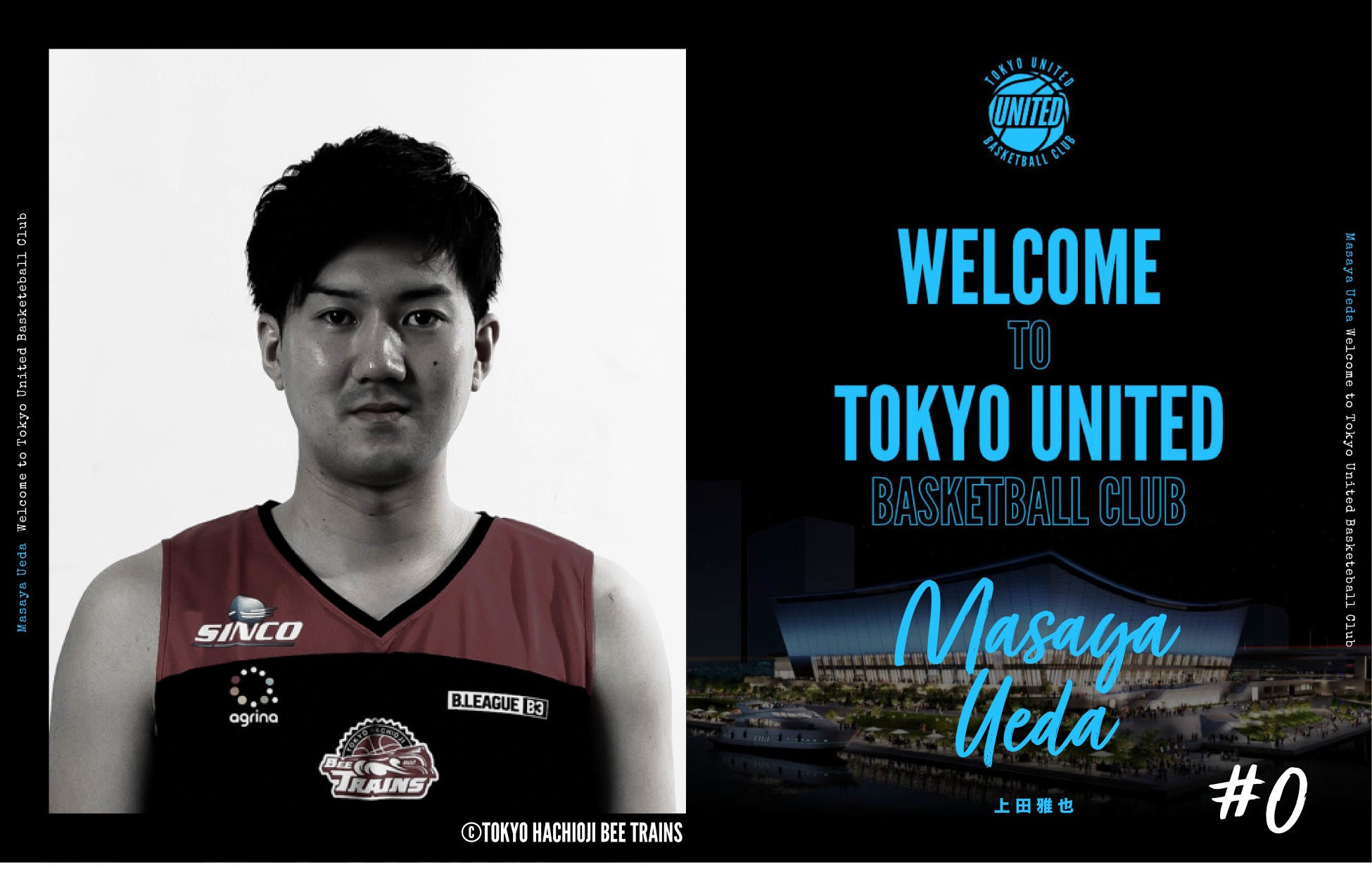 東京ユナイテッドバスケットボールクラブ(本拠地:東京都江東区、クラブ代表:家本賢太郎)は、B3リーグ2022-2023シーズンより上田 雅也(うえだ まさや)選手と契約合意(新規)致しましたので、お知らせします。
