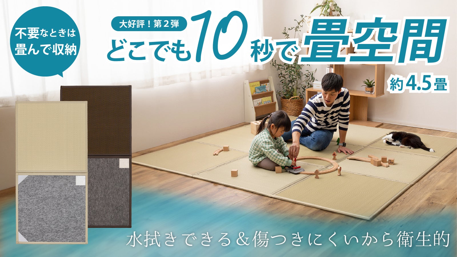 そんな人にオススメしたいのが、創業132年を迎えた萩原株式会社が応援購入サービス「Makuake」で先行販売している“10秒で4.5倍になる!収納も掃除もしやすい!「隙の無い置き畳」です。