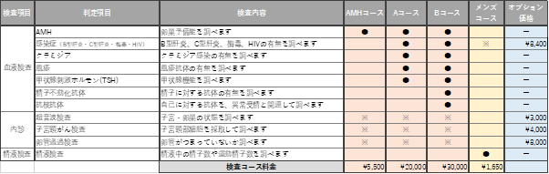 *³女性はオプションで内診を受けていただくことも可能です。男性は基本精液検査で、オプションとして血液検査を受けていただくことが可能です。