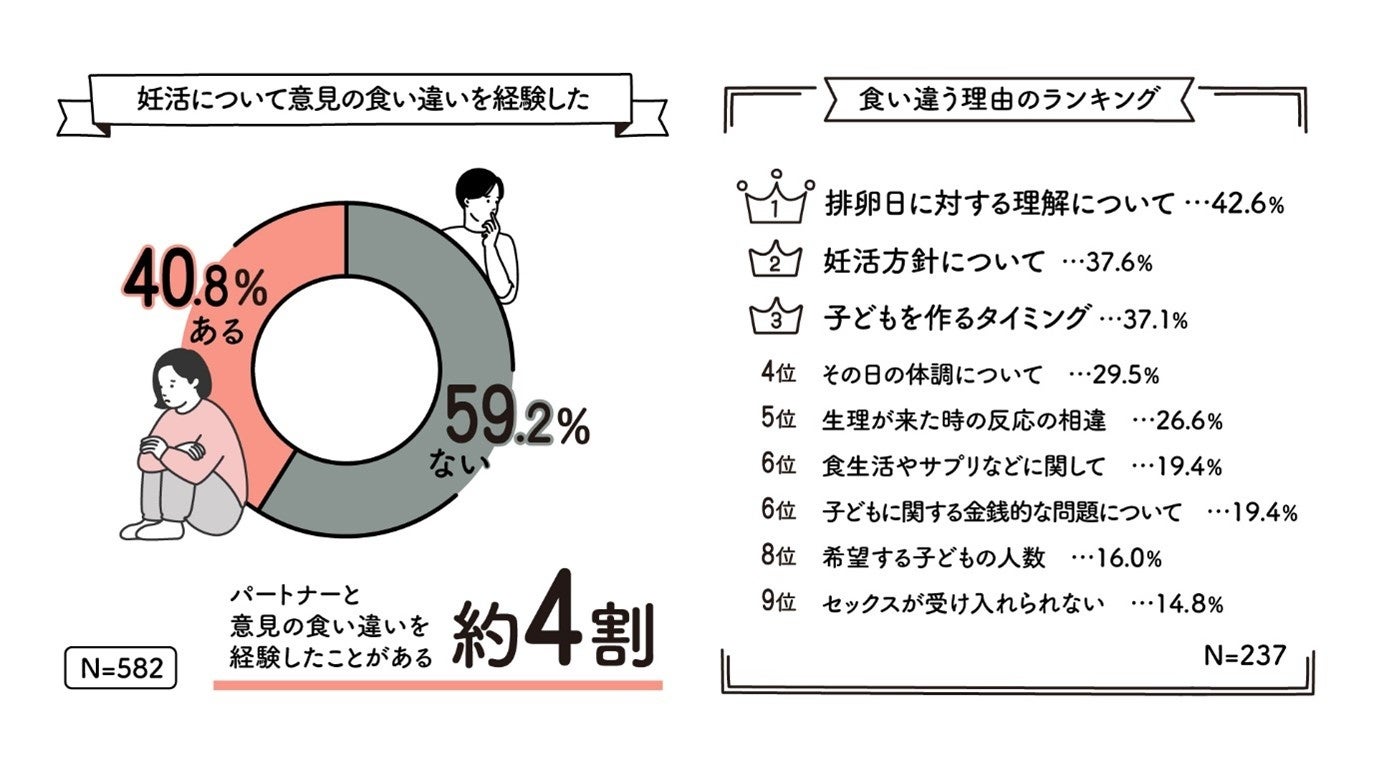・40.8%が、パートナーと妊活について意見の食い違いを経験したことがあると回答。