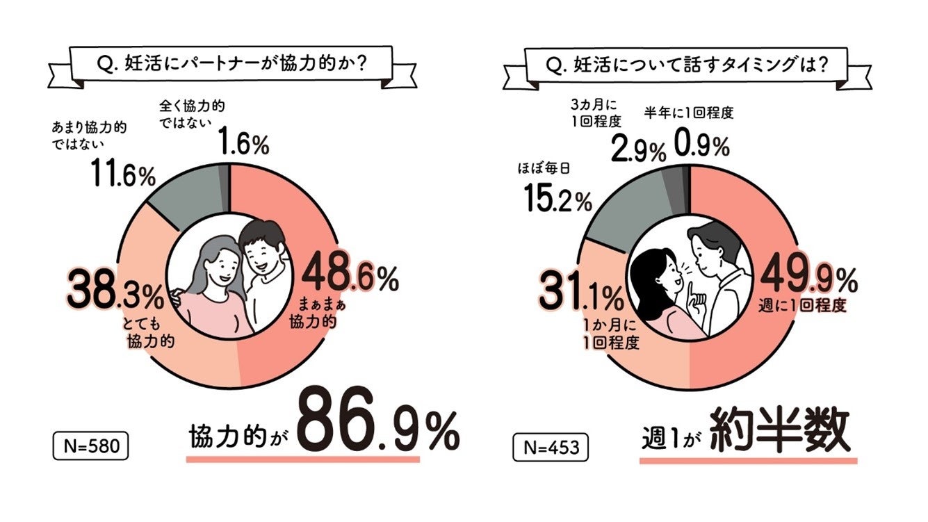 夫婦で足並み揃えて行う妊活スタイルの時代が到来 妊活中の女性約9割が、パートナーが妊活に協力的だと回答!話す頻度は「週1」が最多