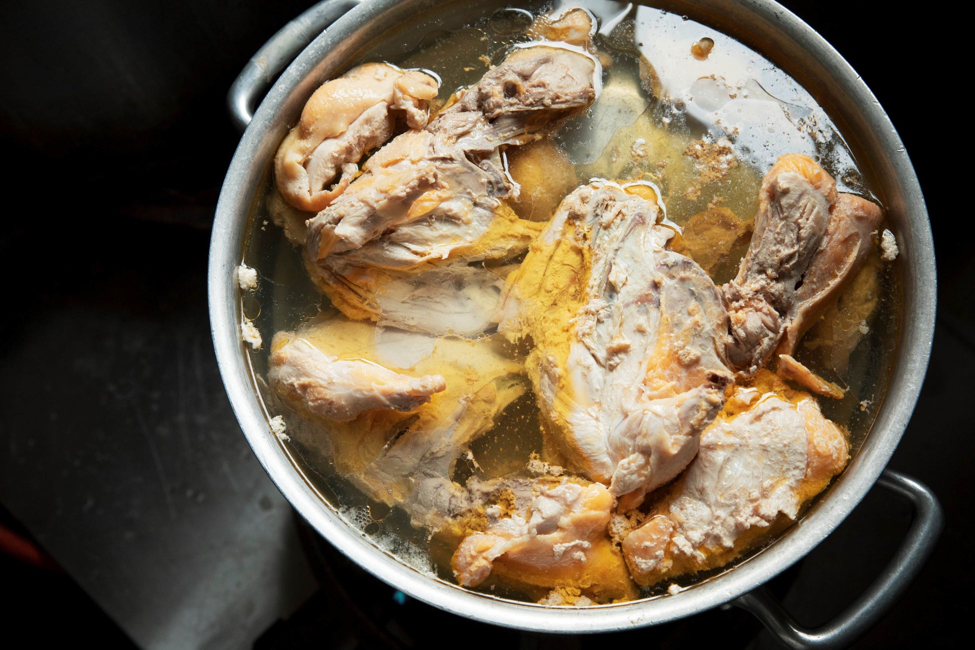 鶏と水のみで作る純鶏スープは、鶏の大きさやその日の気温・湿度等に合わせて、