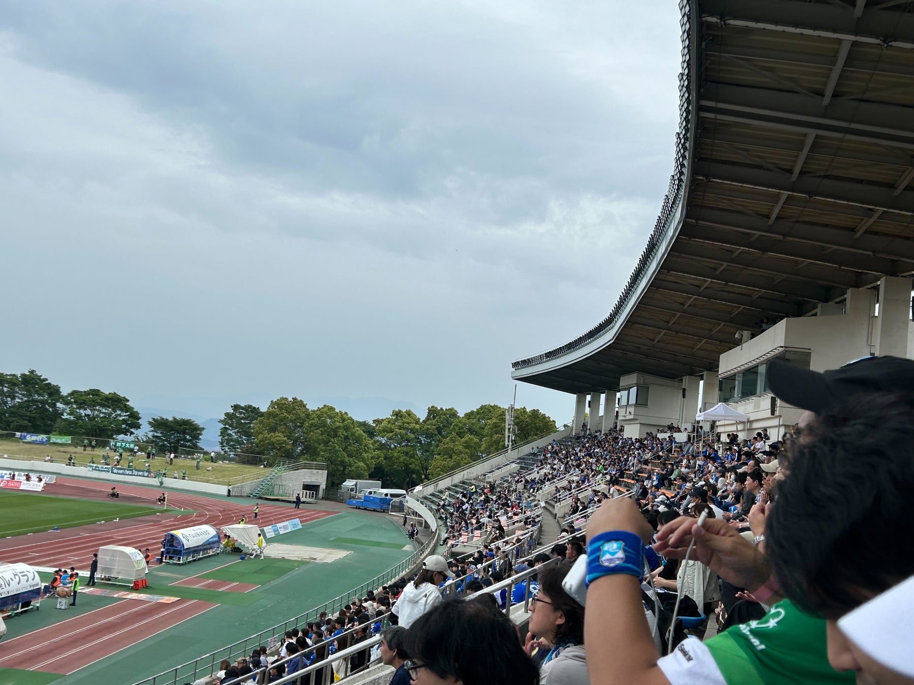 小雨がちらつく中、試合は終始大盛り上がり。観客席は多くのファンでにぎわいを見せていました。