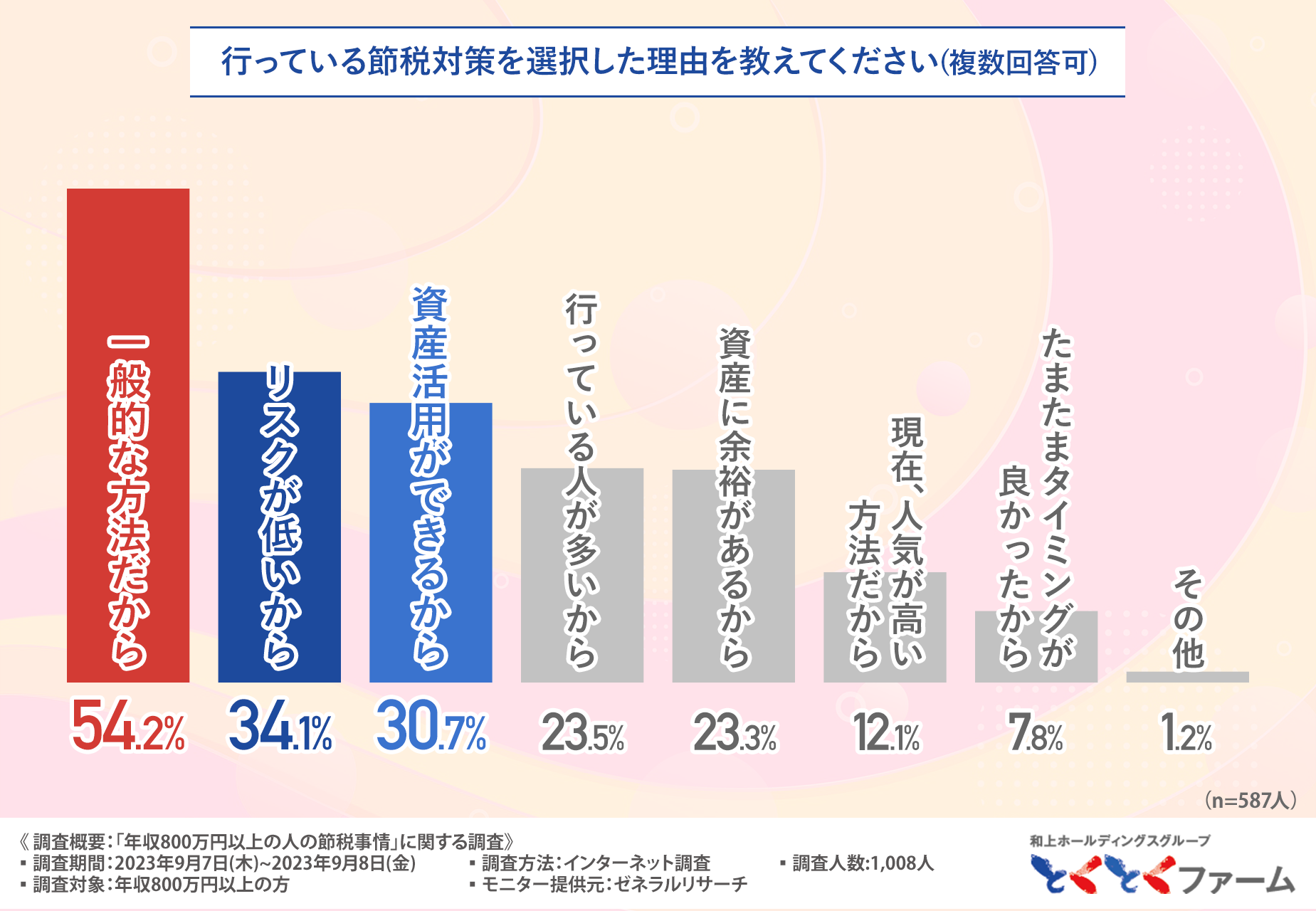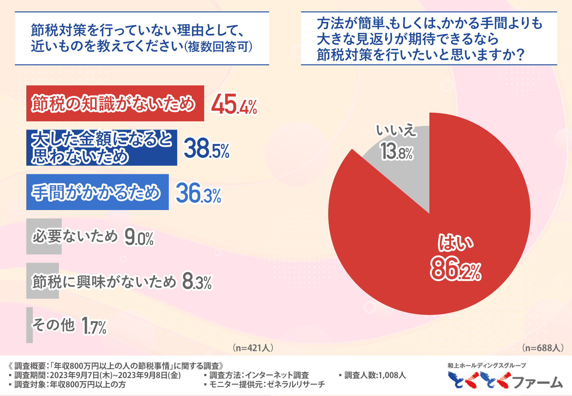 今回調査を実施した株式会社和上ホールディングスは、年収800万円以上の方を対象とした節税対策サービス『節税の達人』(https://wajo-holdings.jp/farm/tax-saving/)ご提供しております。