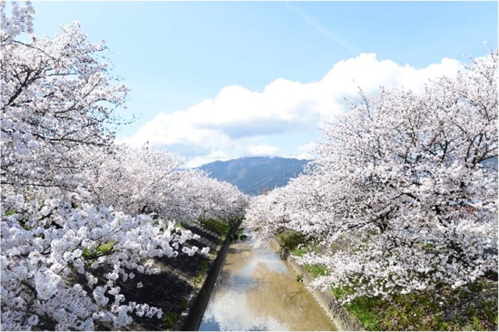 大中公園を中心に川の南北2.5kmにわたり、見事な桜のトンネルが続きます。夜になると、夕闇とともにぼんぼりが灯り、ライトアップされた夜桜を楽しむことができ、奈良県を代表する桜の名所の一つとなっています。