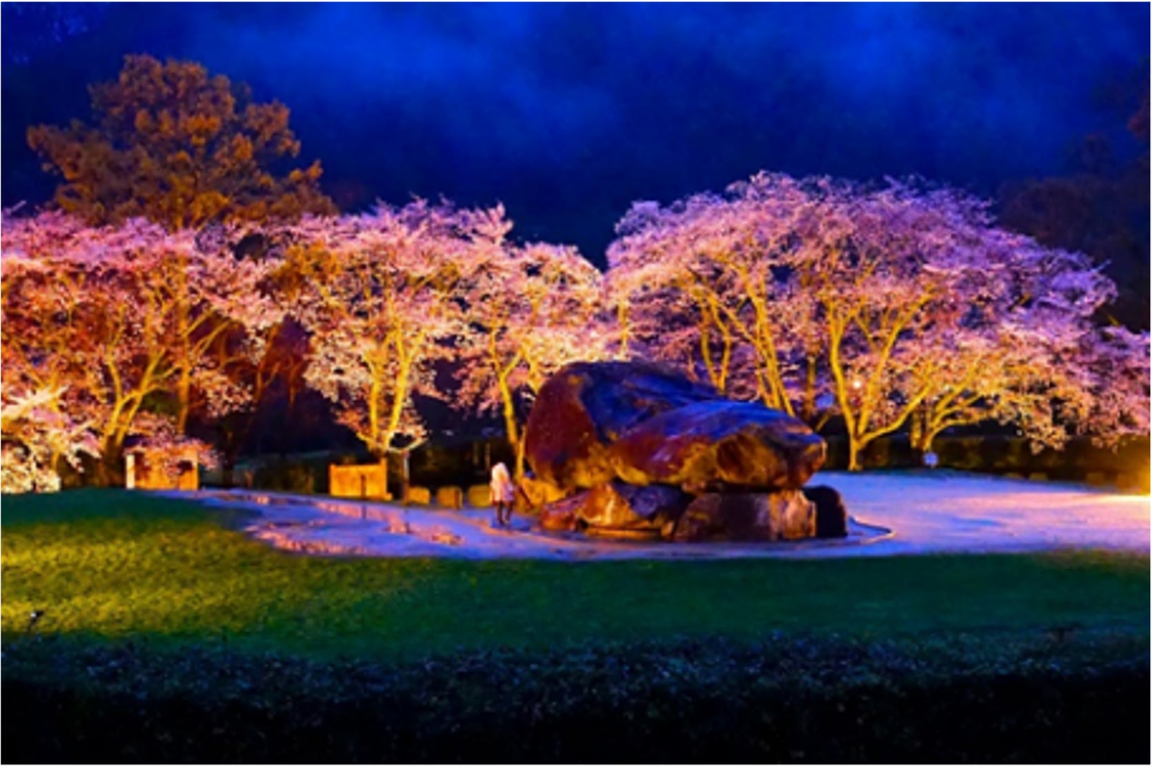 日本最大級の方墳で、総重量約2,300トンの岩が使用されている特別史跡「石舞台古墳」。その古墳周辺を囲むように咲き誇る桜の開花に合わせ、ライトアップを行います。一帯が幻想的な光に包まれる、夜の石舞台古墳にぜひお越しください。