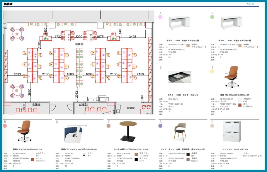 Swish(スウィッシュ)は、空間づくりにおけるメーカー横断のプラットフォームとして、空間提案の業務工数を80%削減するとともに、クオリティの高い空間提案をサポートするシステムです。