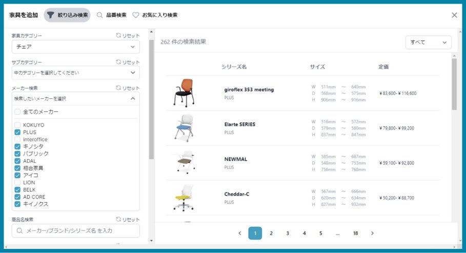 今後は、オフィス以外の空間で使われる家具や、家具以外の内装デザインに関わるデータベースも構築し、これまで以上に多くの企業様にご活用いただけるサービスへ進化させてまいります。