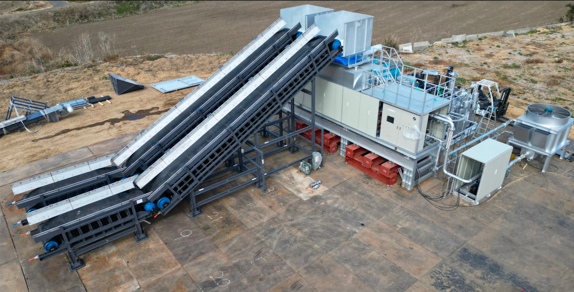 今回の確認試験では、装置の組立て、畜体の投入、加熱、取り出し、分注、装置の洗浄までの一連の工程を行いました。用意した牛の畜体は10トン。切断せずにまるごと一頭ずつ装置に連投し、2時間でスラリー化。畜体投入後の本体装置(ERS)の缶体内は80〜99度に到達し、動物検疫所が定める感染性の除去機能、処理能力、安全性など、すべての要求条件を十分に満たしていることが確認されました。なお、試験の様子は、下記URLより動画をご視聴いただけます。