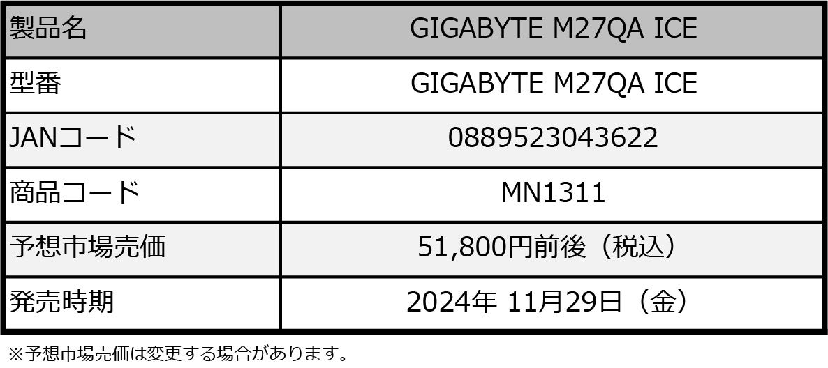 GIGABYTE M27QA ICE https://newx-corp.jp/product/gigabyte-m27qa-ice/