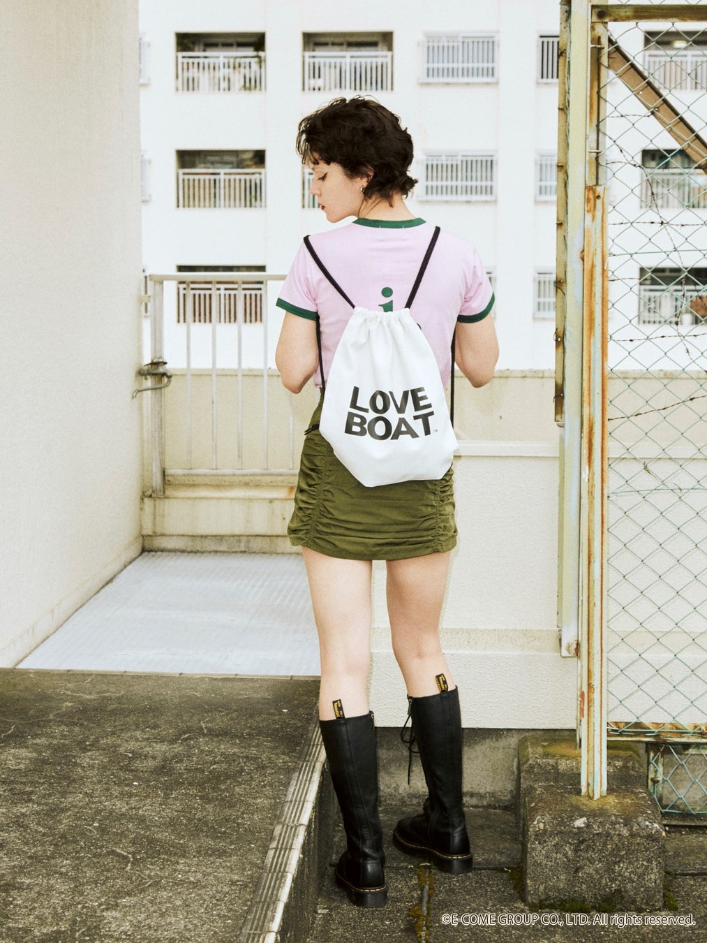 大きくプリントされたLOVEBOATのロゴがスタイリングのアクセントになります 。