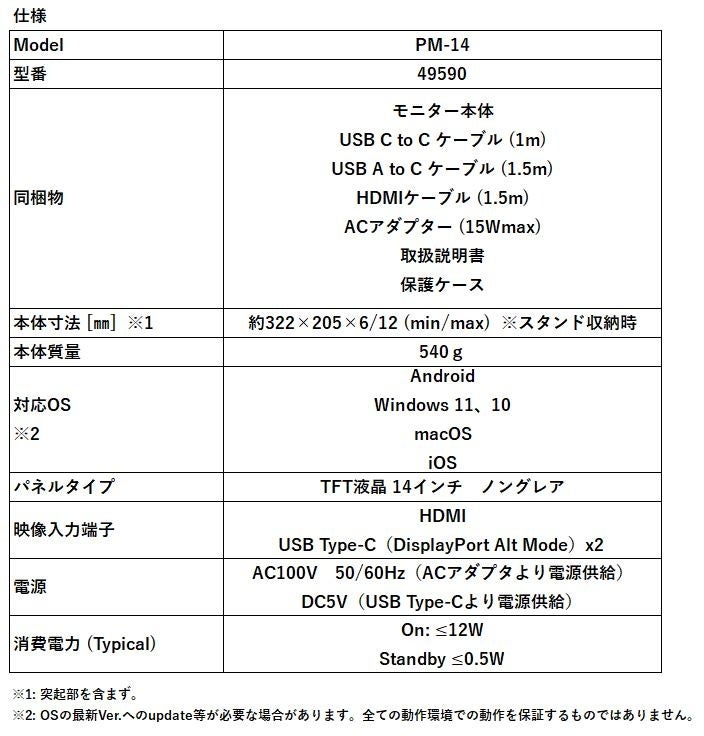 【Verbatim】14インチ ポータブルモニター「PM-14」発売