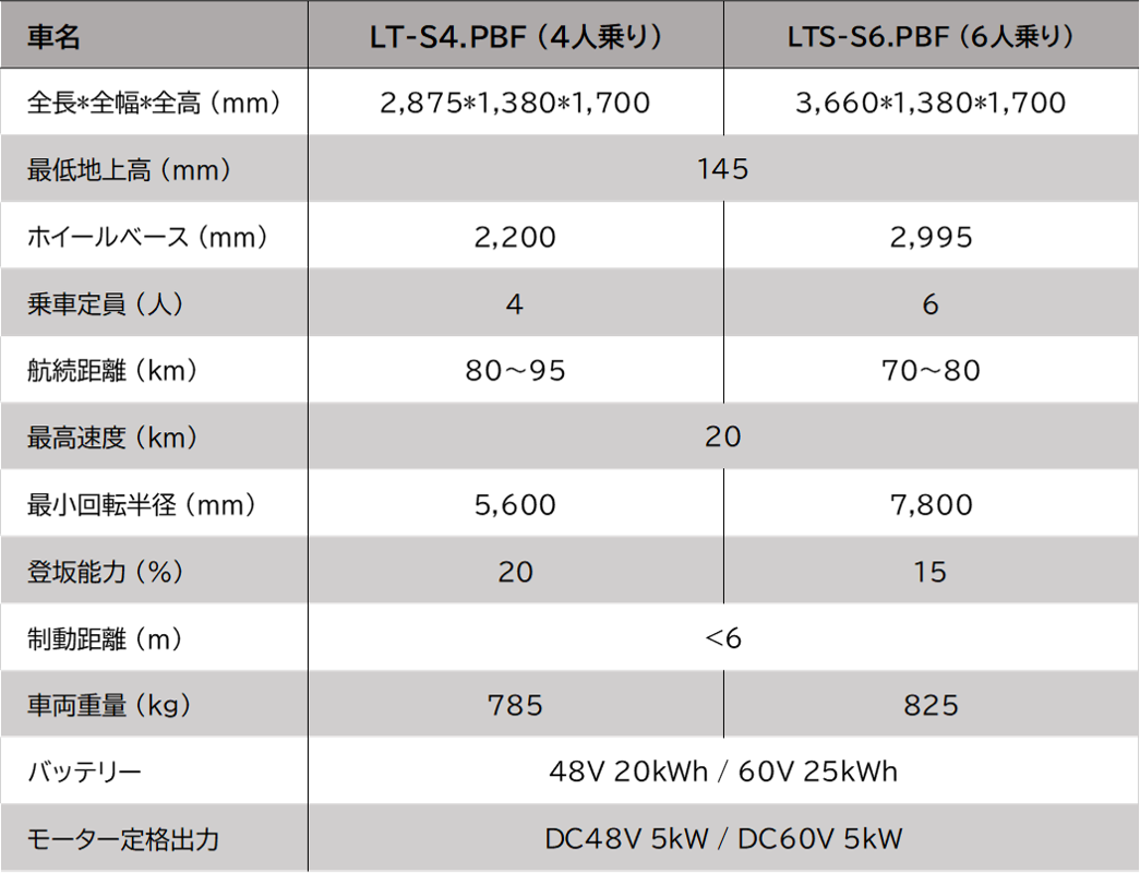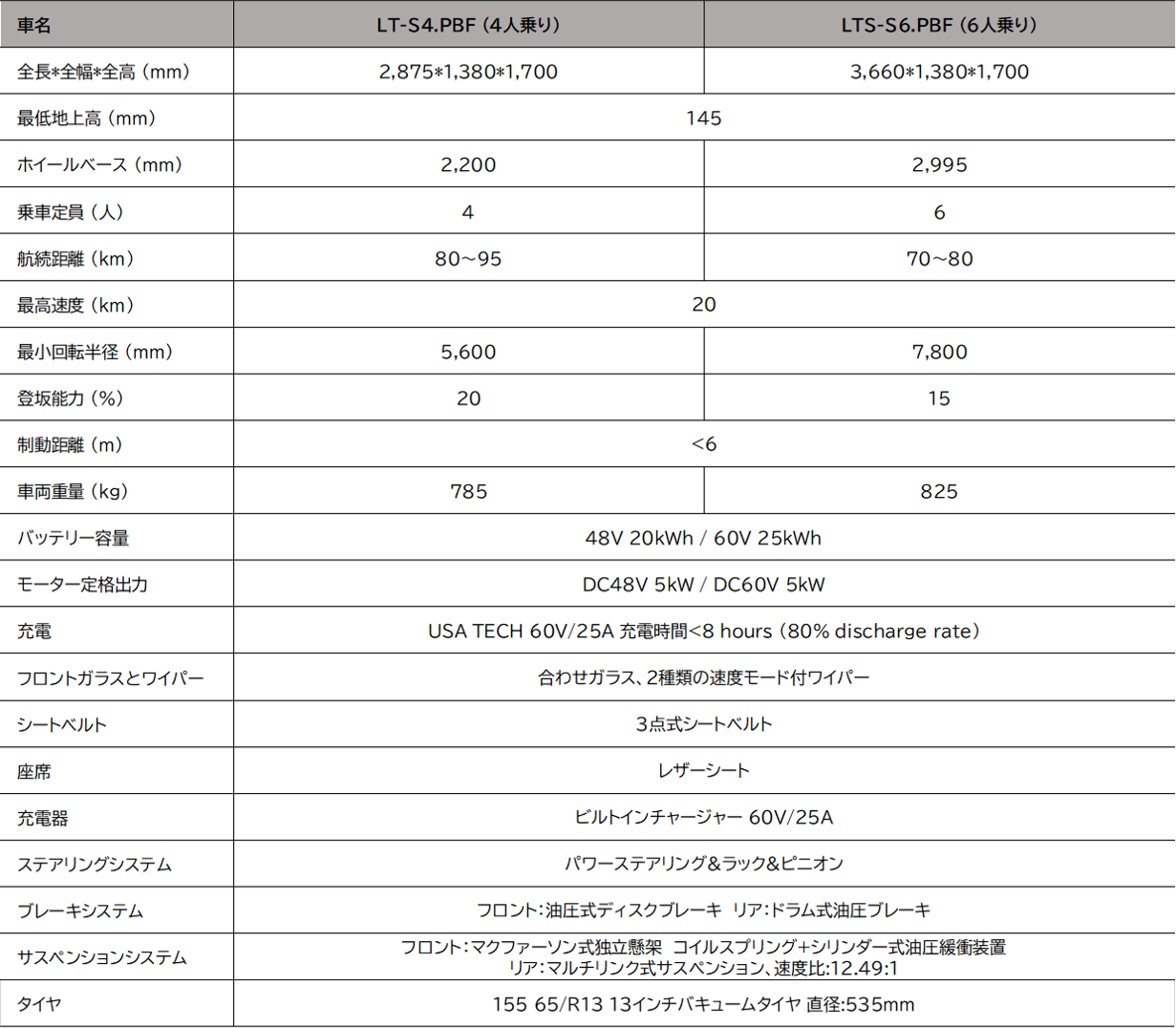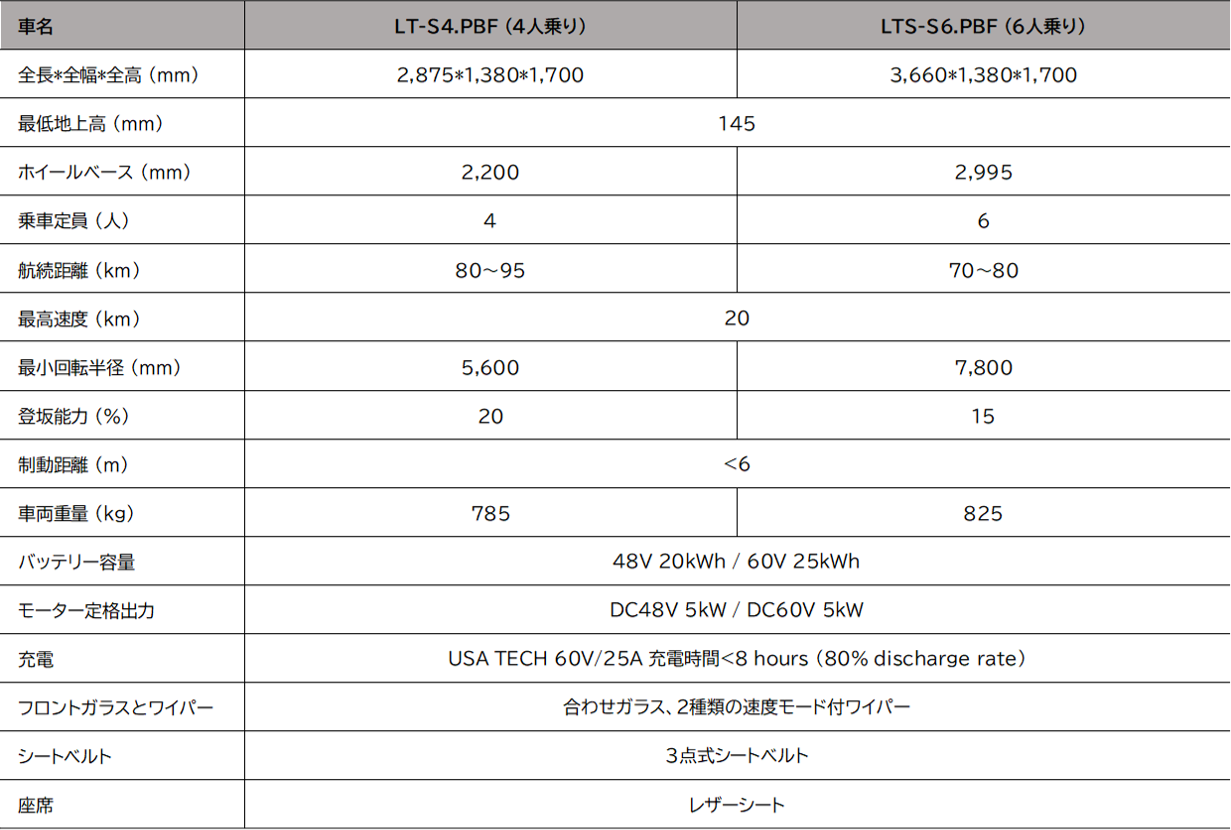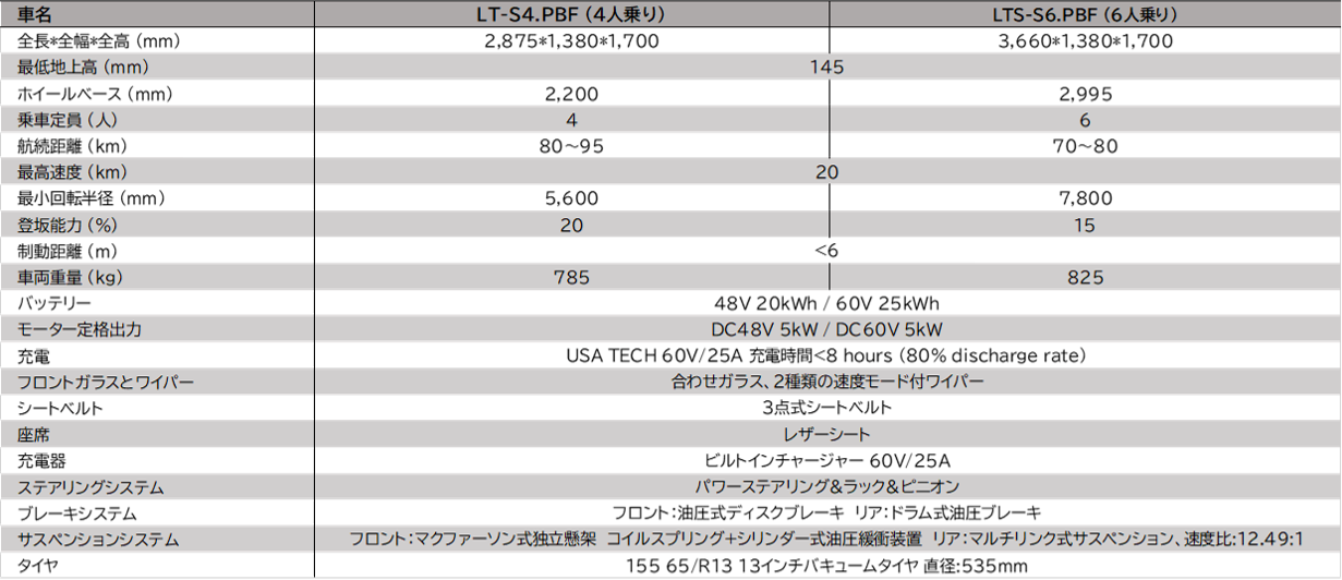 7. 航続距離 (km):4人乗り:80~95 / 6人乗り:70~80