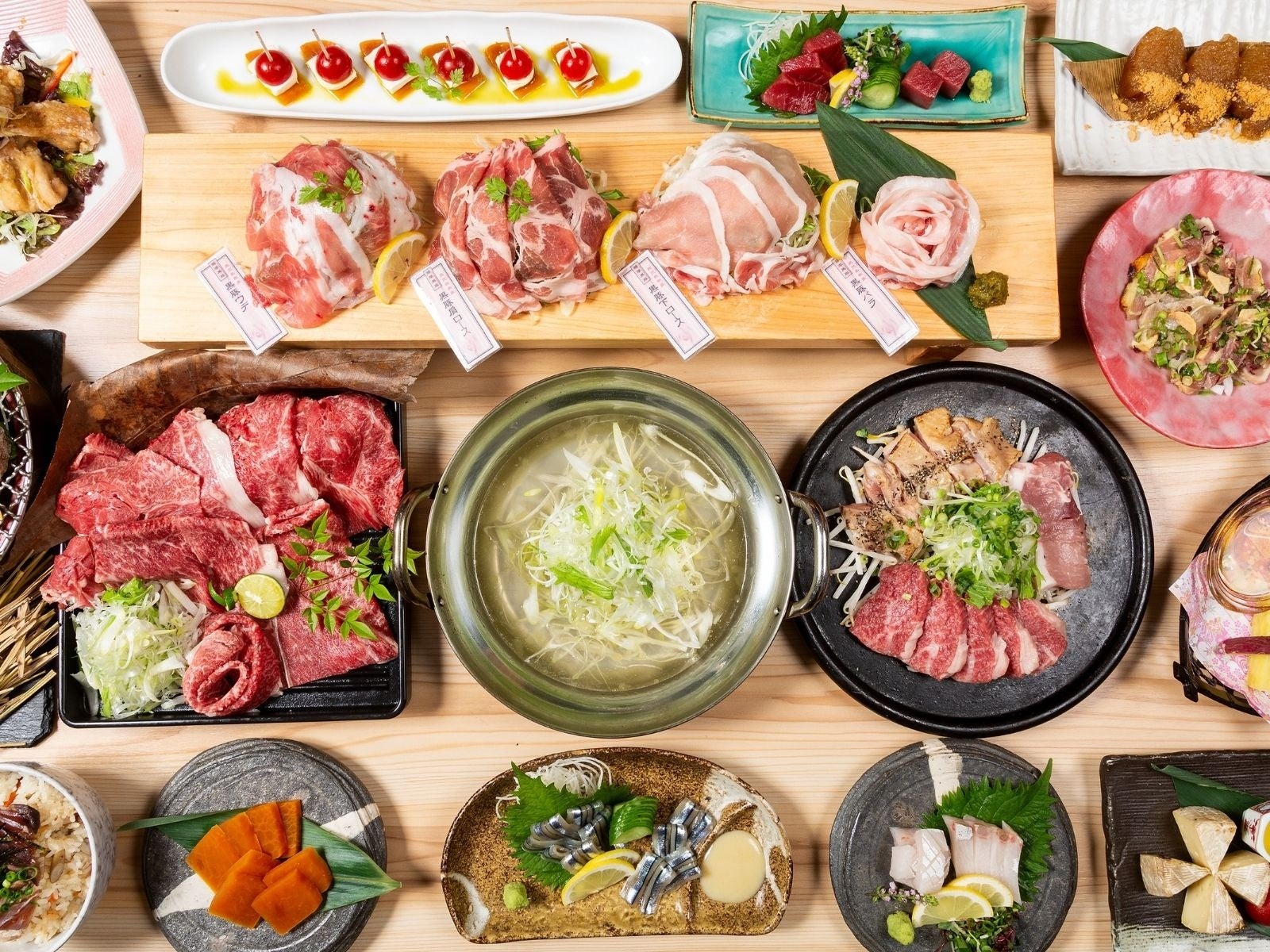 歓送迎会に人気。錦江湾直送の鮮魚4種盛や薩摩鶏・黒豚のW溶岩焼き、黒豚の軟骨煮など、鹿児島を満喫できる全10品のコース。生ビールを含む2時間プレミアム飲み放題付です。